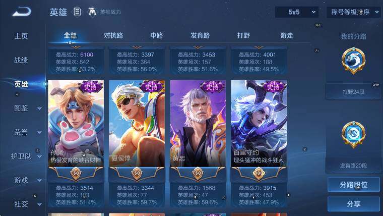 贵族6/皮肤221/典藏1/传说8/史诗55/英雄128/孙权全皮/空空儿全皮/