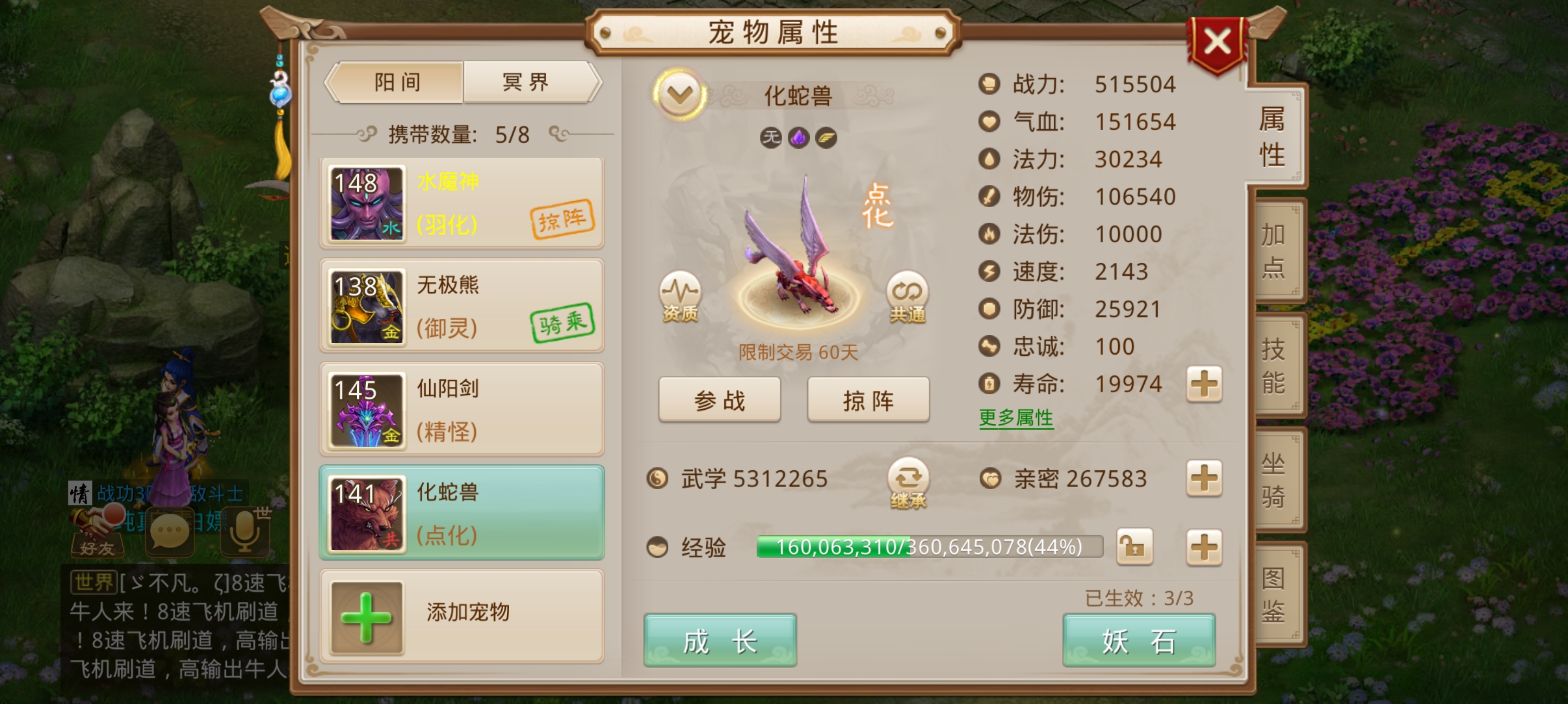 卡139级高级高道水,有会员,有3套价值时装,改6全套套装,成品首饰,稀缺变异宝宝、高强化进化宝宝、鬼宠。吃香职业所有任务不可缺。各种任务boss轻松过。干活性质原因忍痛割爱。