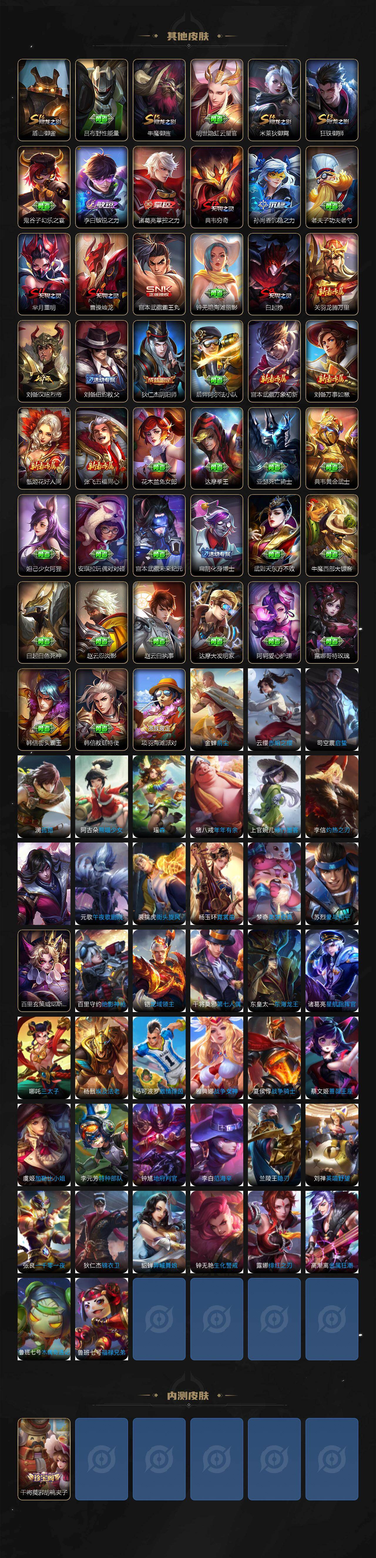 【传说皮肤】:云缨神骥越千峰,桑启鸣野蒿,孙尚香异界灵契,铠绛天战甲,干将莫邪久胜战神,宫本武藏