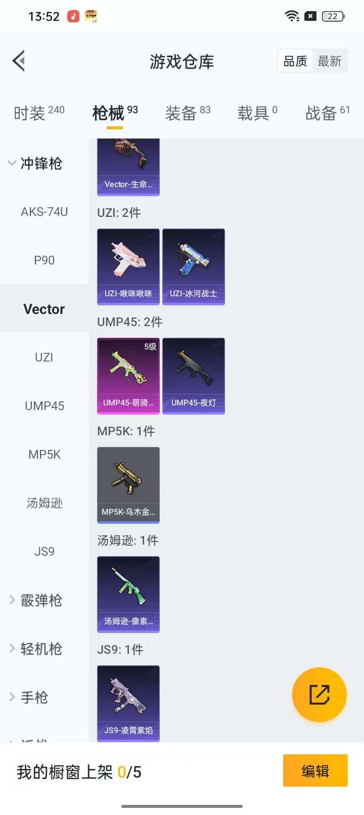 星之彼岸/UMP45-萌骑冒险(五级),Kar98K-巳巳如意(五级),Mk14-福马献瑞(五级),DP-28-豹影疾电(五级)/1粉装4特效枪-0载具-1粉色飞行器-22158热力值-1王牌印记-54套装-93枪皮