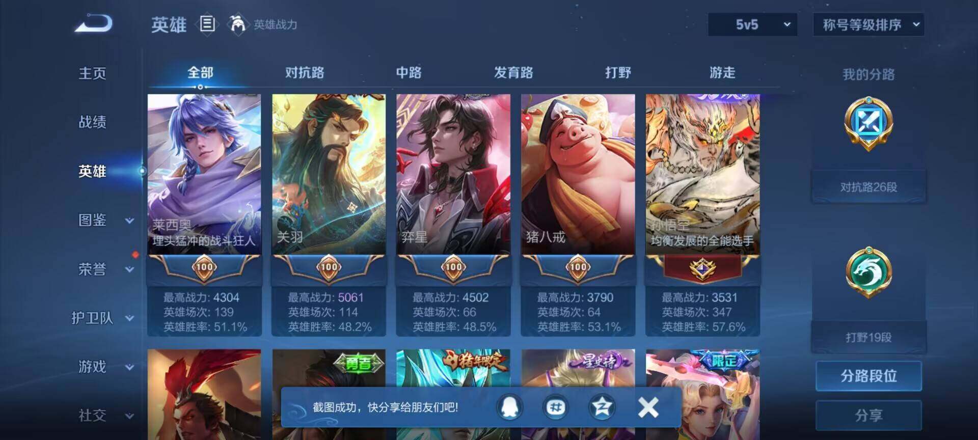 【16776770】贵族8/皮肤301/典藏1/传说19/史诗90/英雄129/司马懿全皮/孙权全皮/敖隐全皮/夏洛特全皮/空空儿全皮/李白-鸣剑·曳影/孙悟空无相/宫本武藏黑崎一护/云缨神骥越千峰/关羽神骥镇沧海/曹操万灵伏威/元歌诡秘之主/大司命死亡执政官/司马懿九山相柳/桑启-鸣野蒿/典韦-战鼓燎原/马超-琥珀纪元/夏洛特-浮生妄/吕布-怒海麟威/裴擒虎-寅
