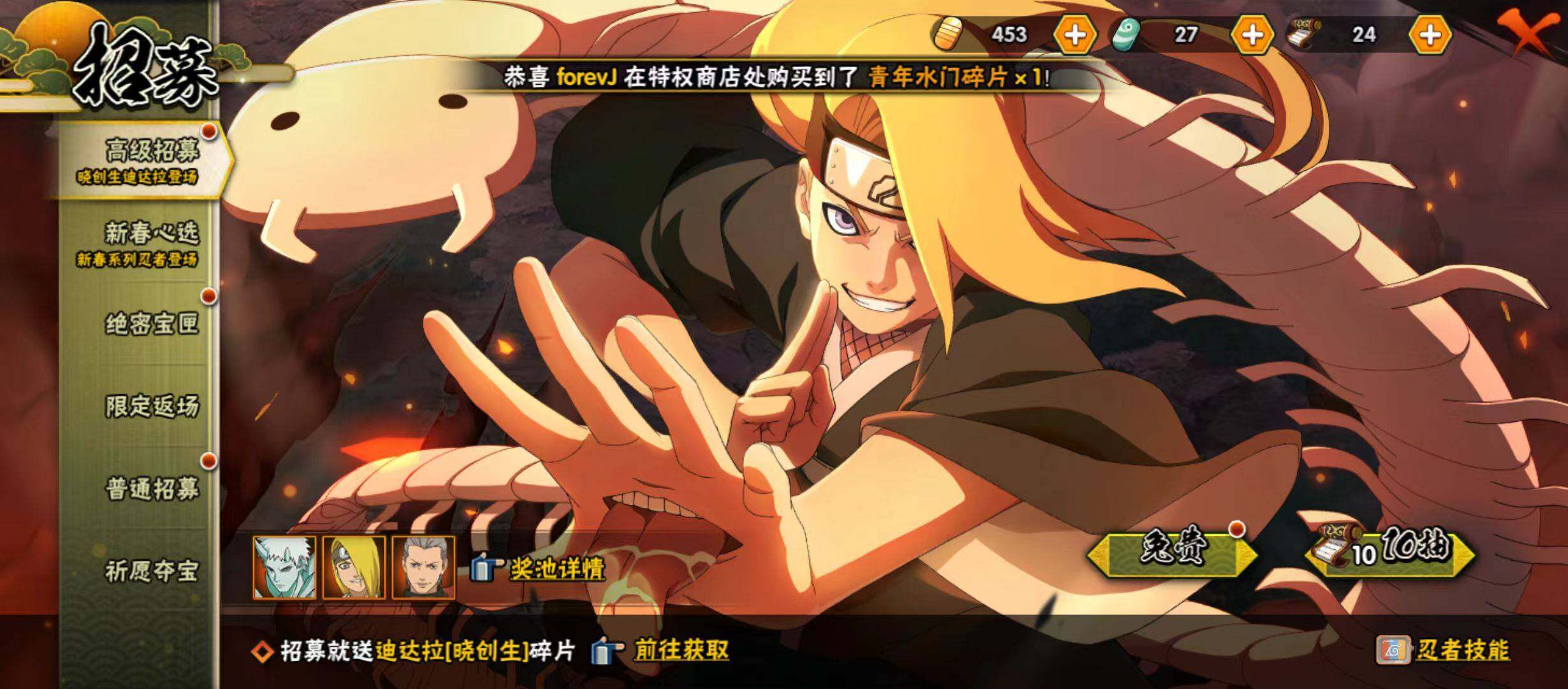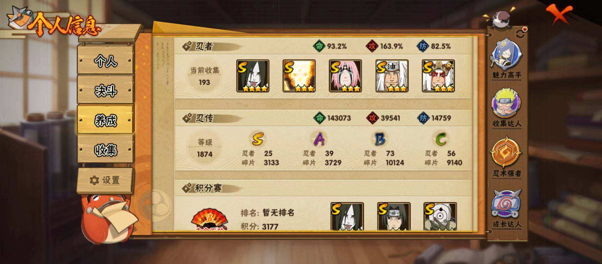 25S级忍者数-39A级忍者数【S级忍者】:长门「秽土转生」(3星),半藏「秽