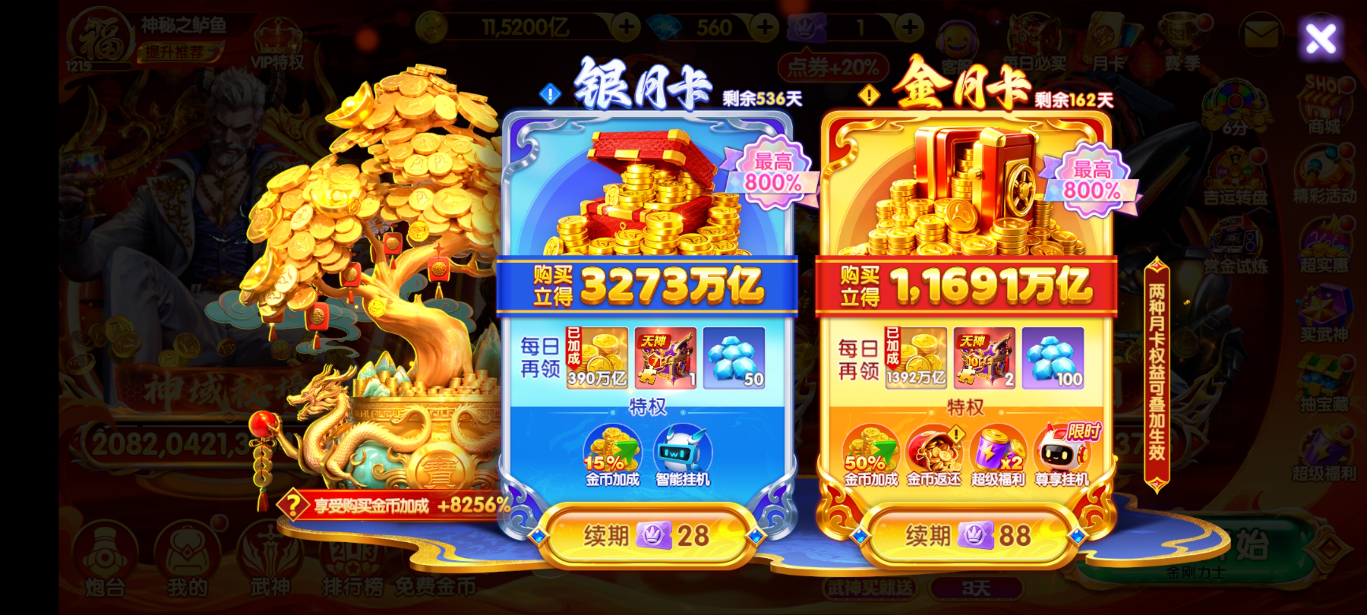 五福全六星 天神除了西游全满 双月卡还有两百多天