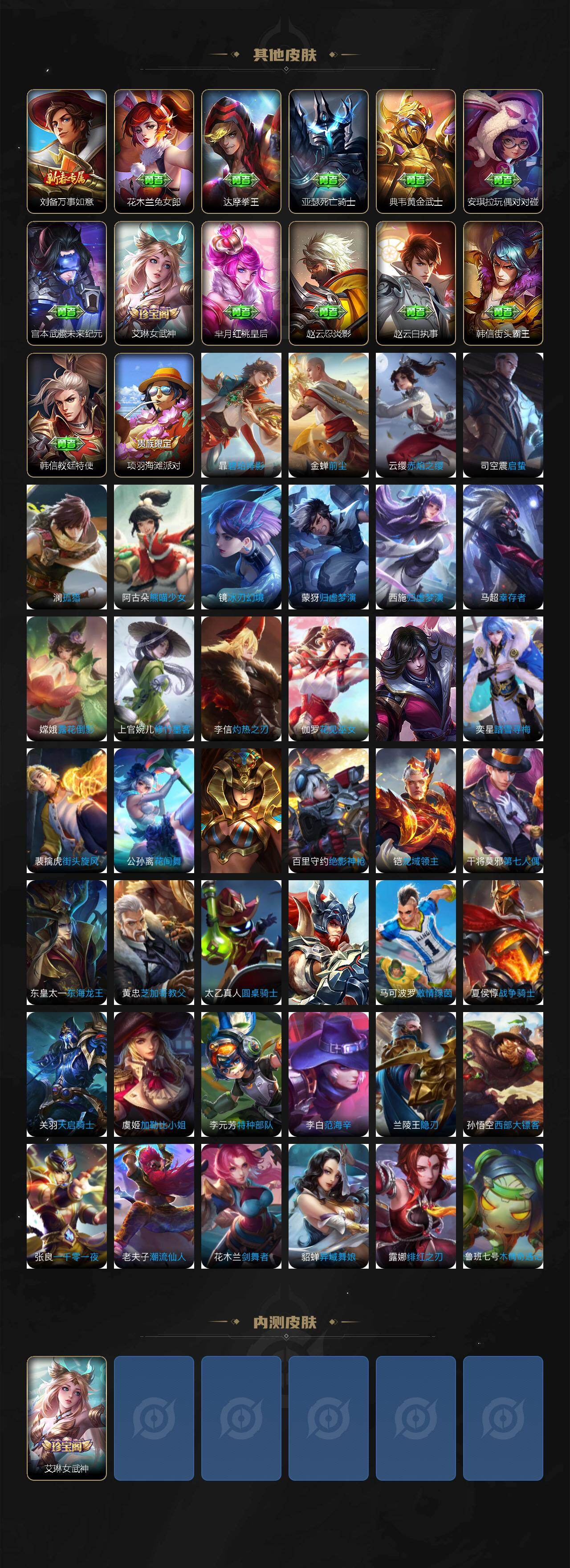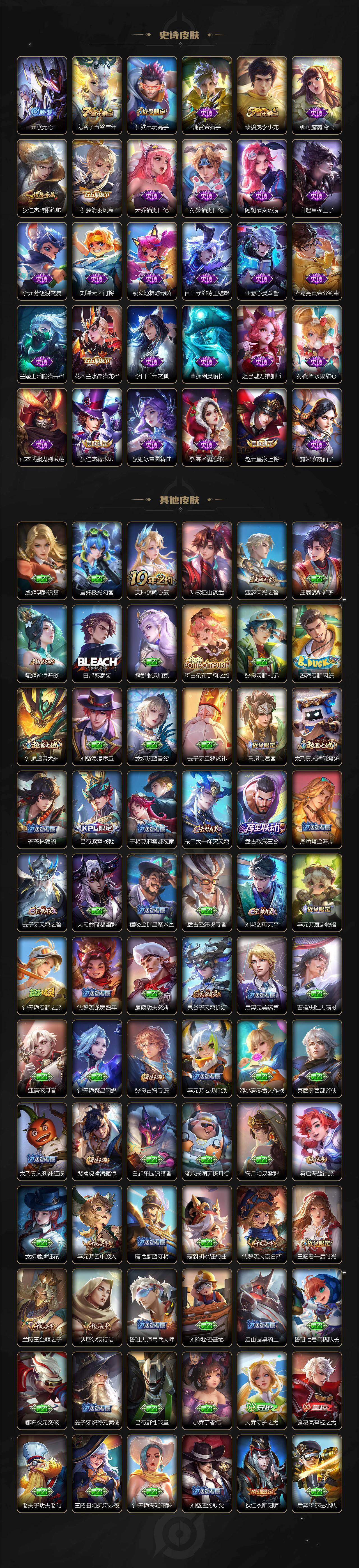 【限定皮肤】:蒙犽顽岩魄,姜子牙天穹之誓,狄仁杰阴阳师,赵云皇家上将,元歌无心,狄