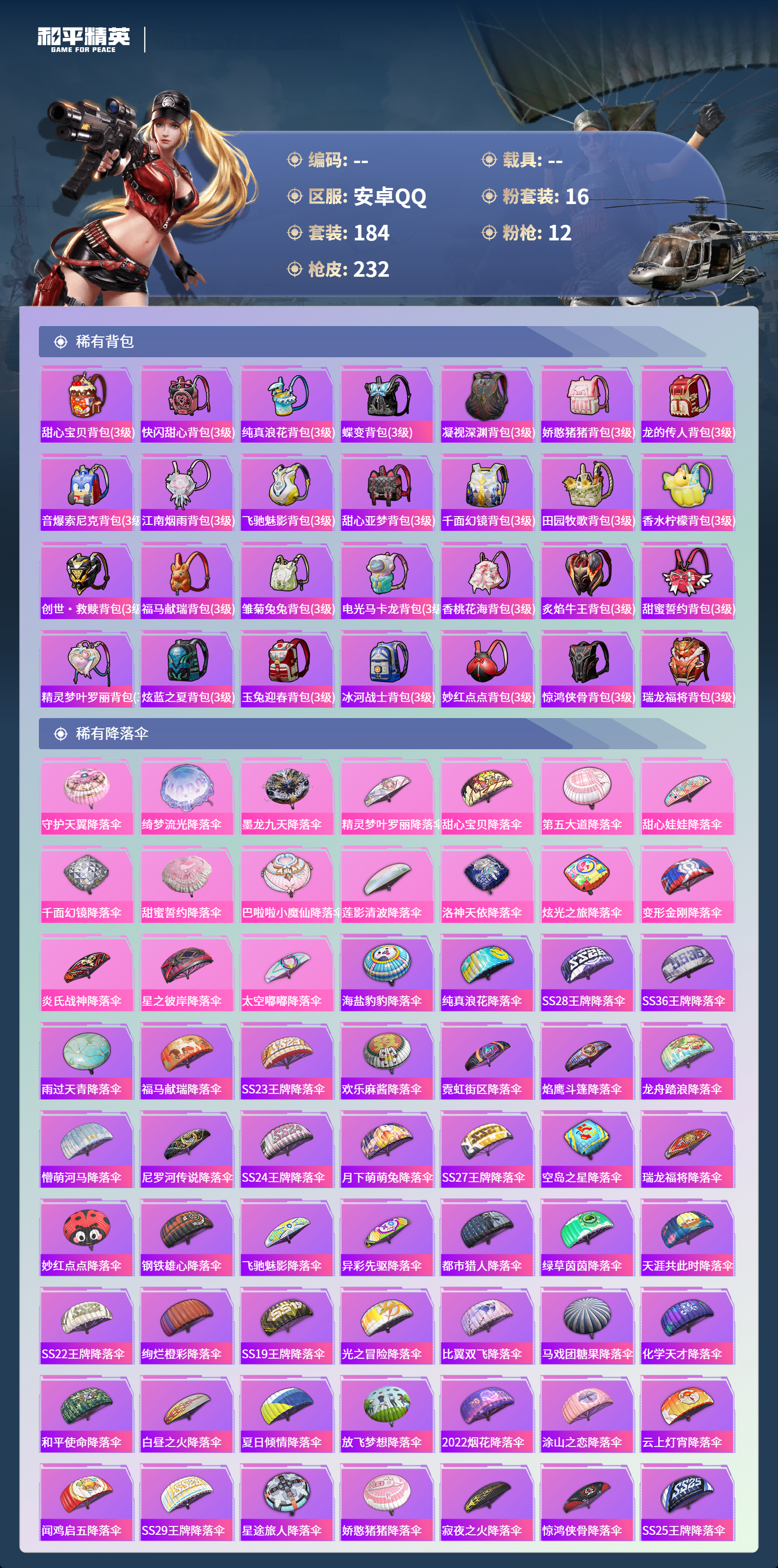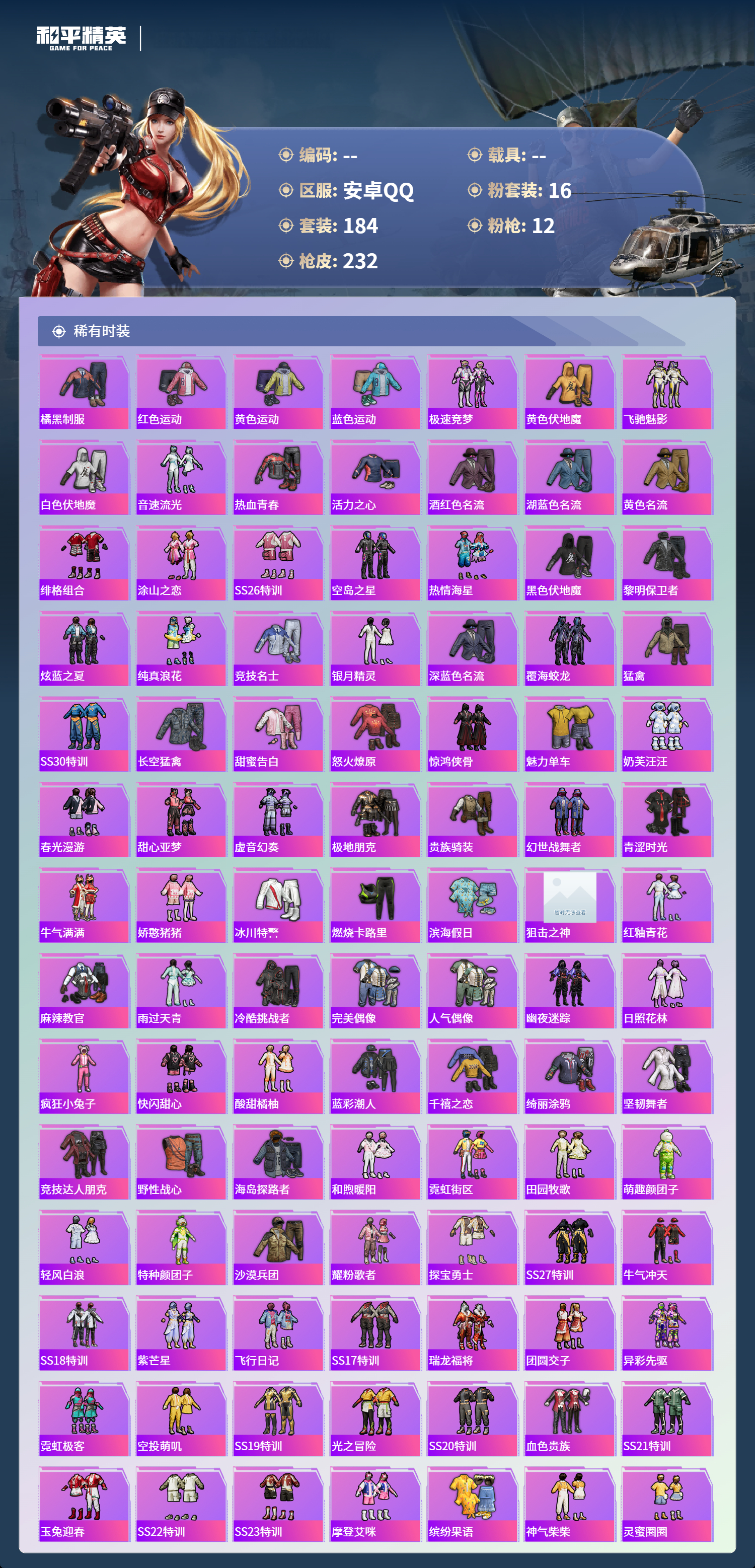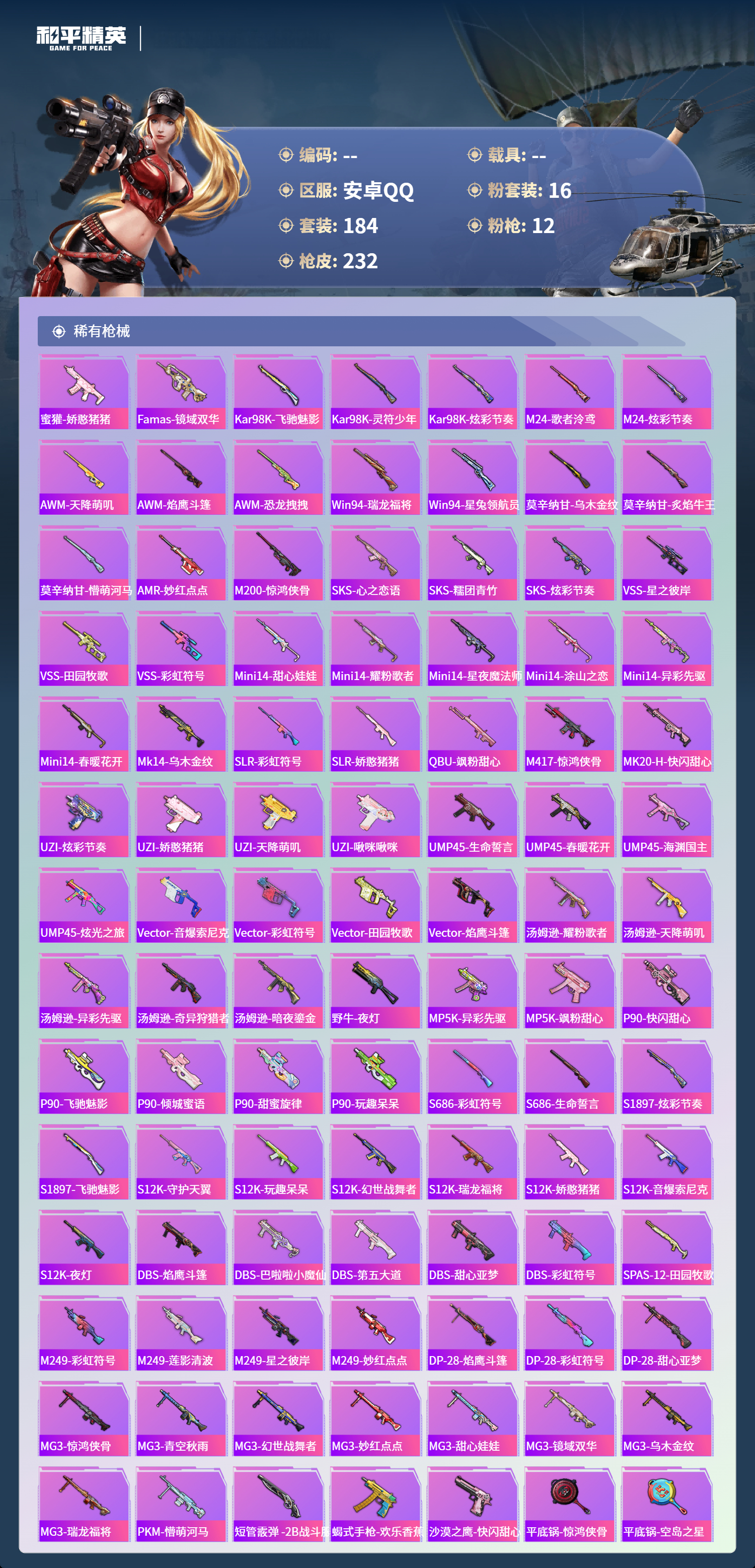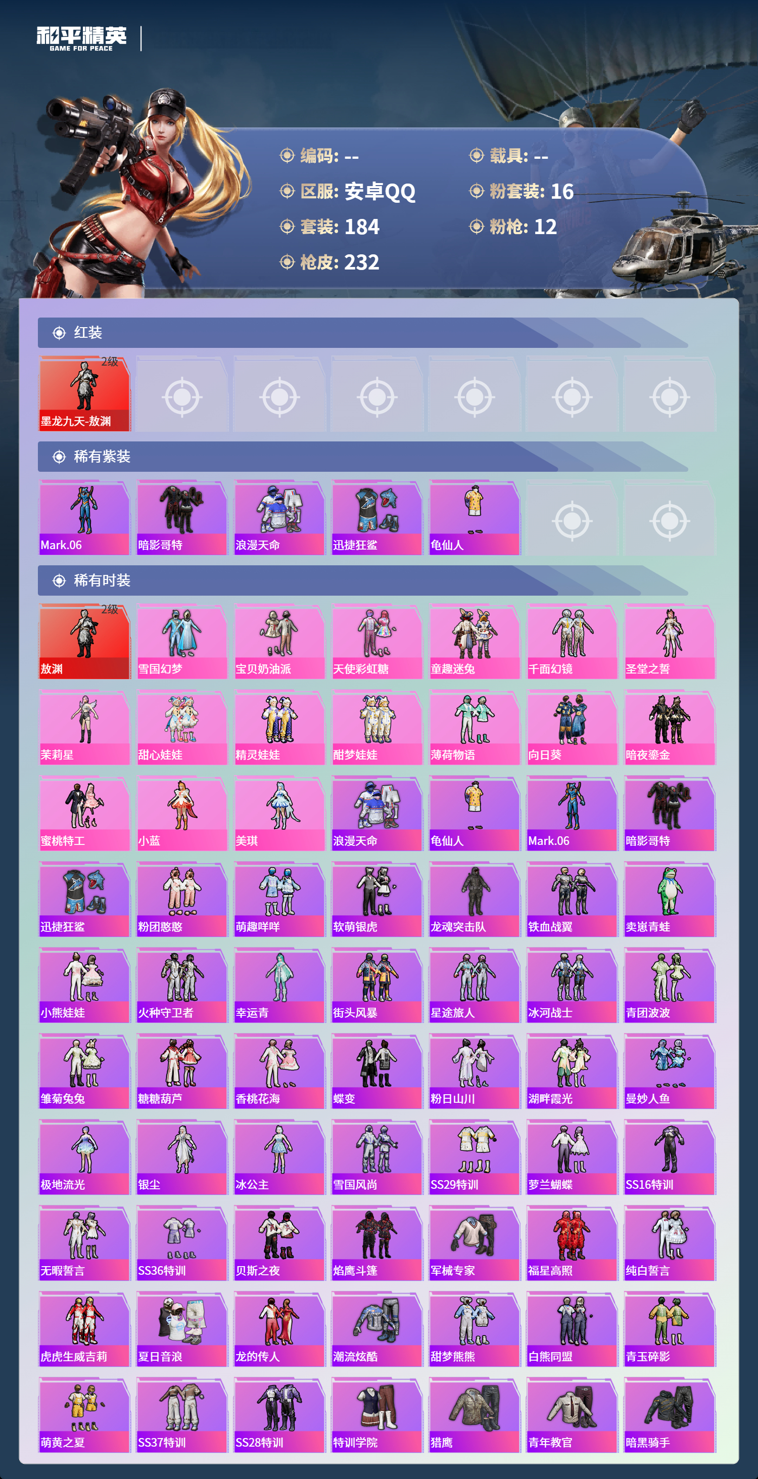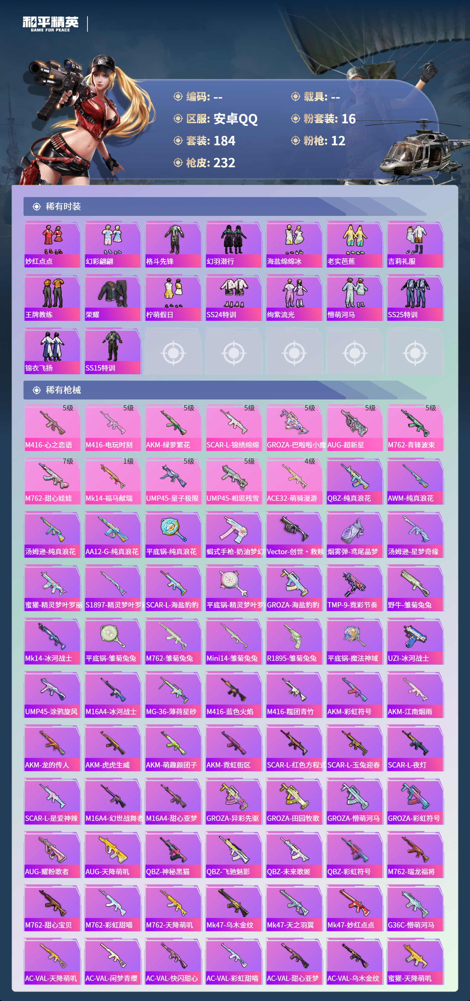 安卓手Q-12王牌印记-1红装-16粉装-12特效枪-81684热