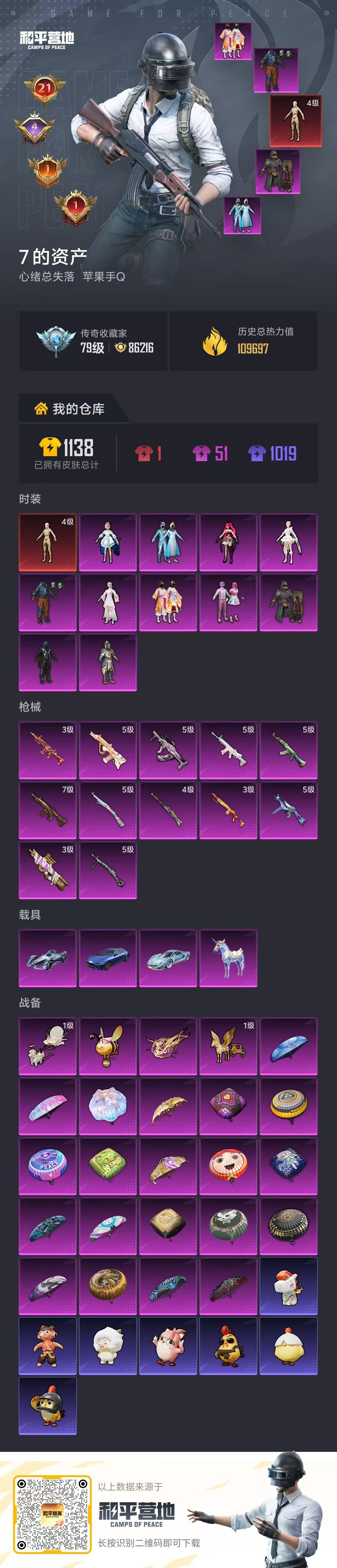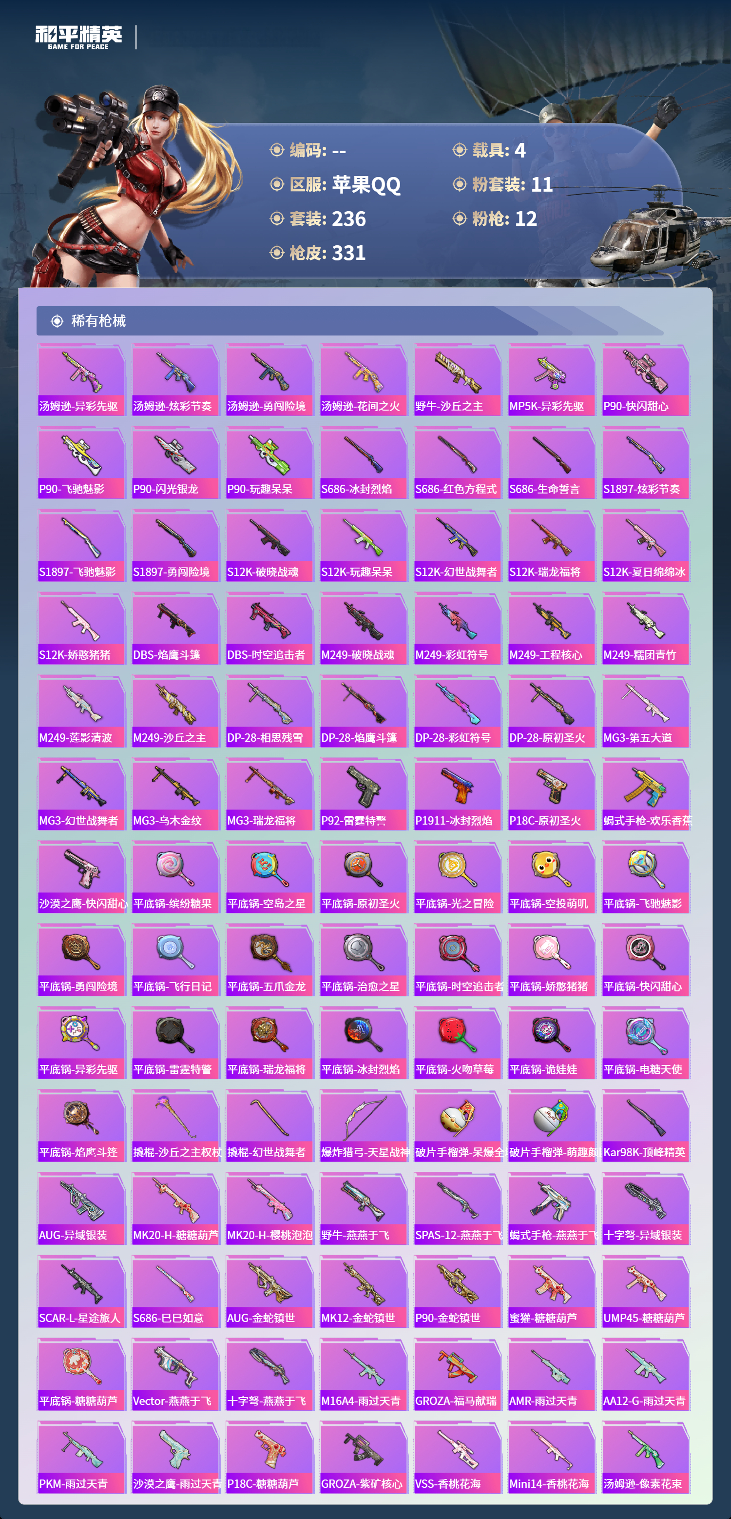 苹果手Q-22王牌印记-有战神框-1红装-11粉装-12特效枪-4