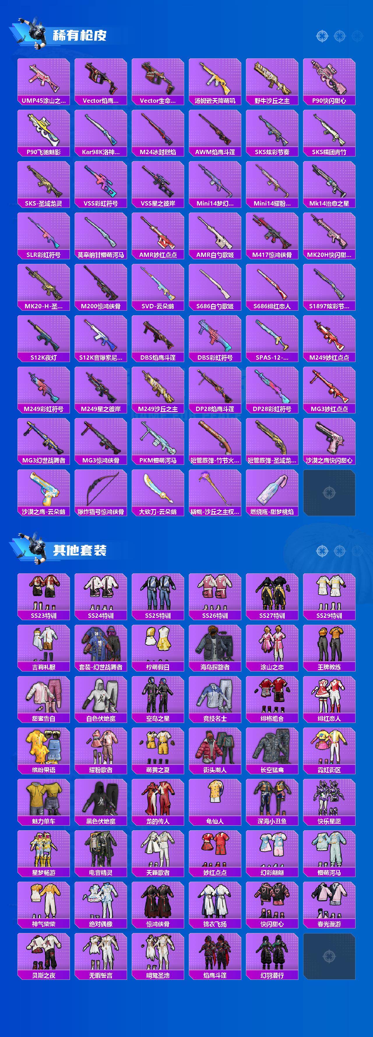 【粉色枪皮等级】:AKM-炫紫旋律(三级),AKM-绿萝繁花(五级),SCAR-L-梦幻火箭(四级),SCAR-L-锦绣绵绵(五级),M416-风花雪月(五