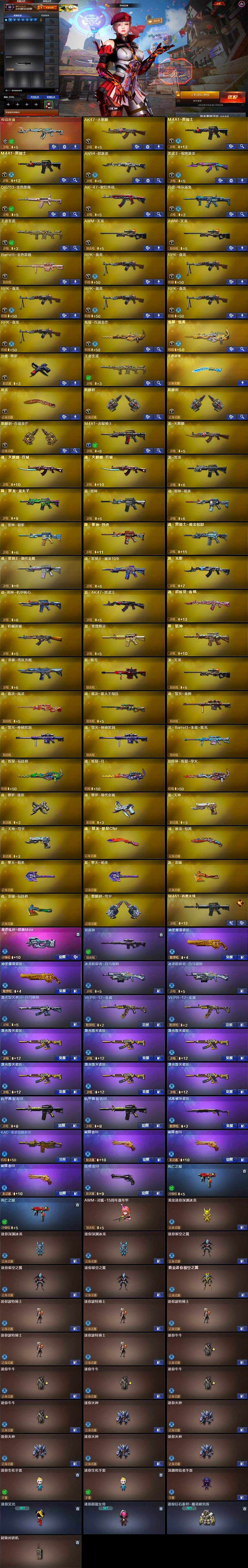 【热门武器】:传说圣谕,QBZ03-金色蔷薇,死亡之眼*2,白虎-电玩蓝兔,M4A1-黑骑士*2,RPK-盘龙*6,沙鹰-修罗