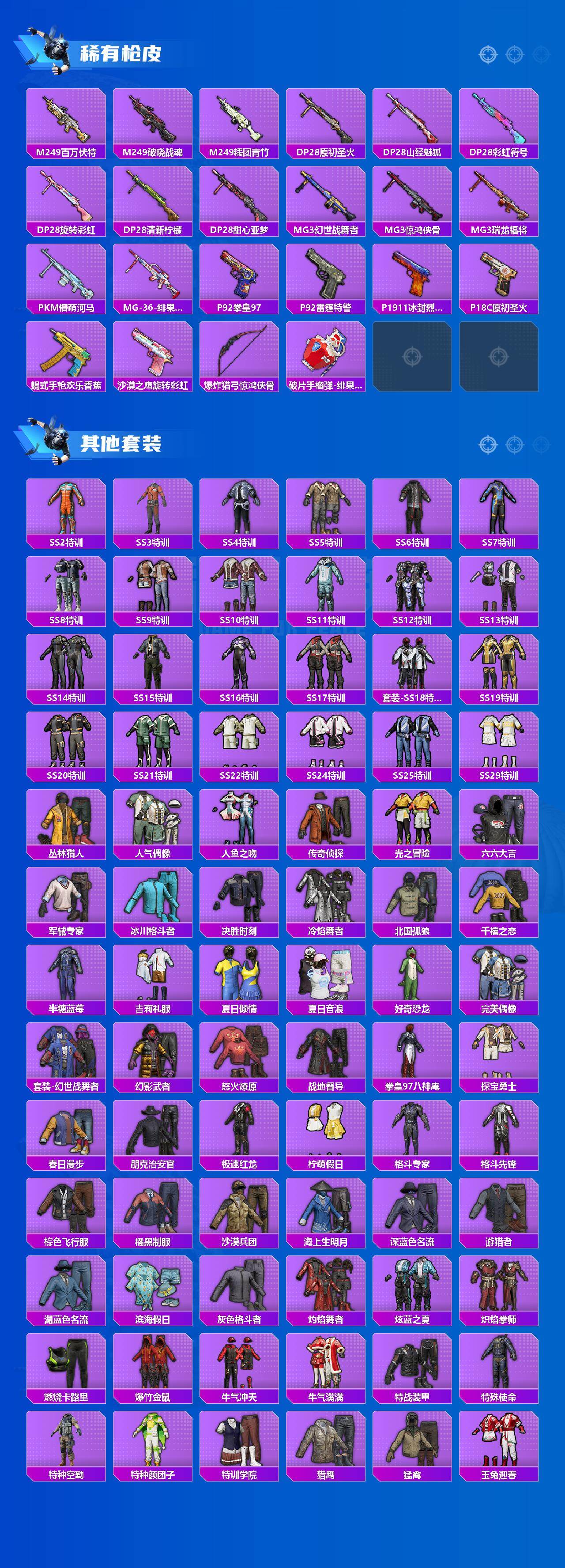 【粉色套装】:粉装-幻影战神,粉装-天启纪元,粉装-静灵氛围,粉装-天禅智恒,粉装-彗云及圣,粉装-琉璃脉冲,粉装-新星烈龙,粉装-香水柠檬,粉装-蜜桃特工,粉装-蝶舞蔷薇,粉装-彩虹甜喵,粉装-旋转彩虹,粉装-冰川粉黛,粉装-冰川幽秘,粉装-银红美神,粉装-未来
