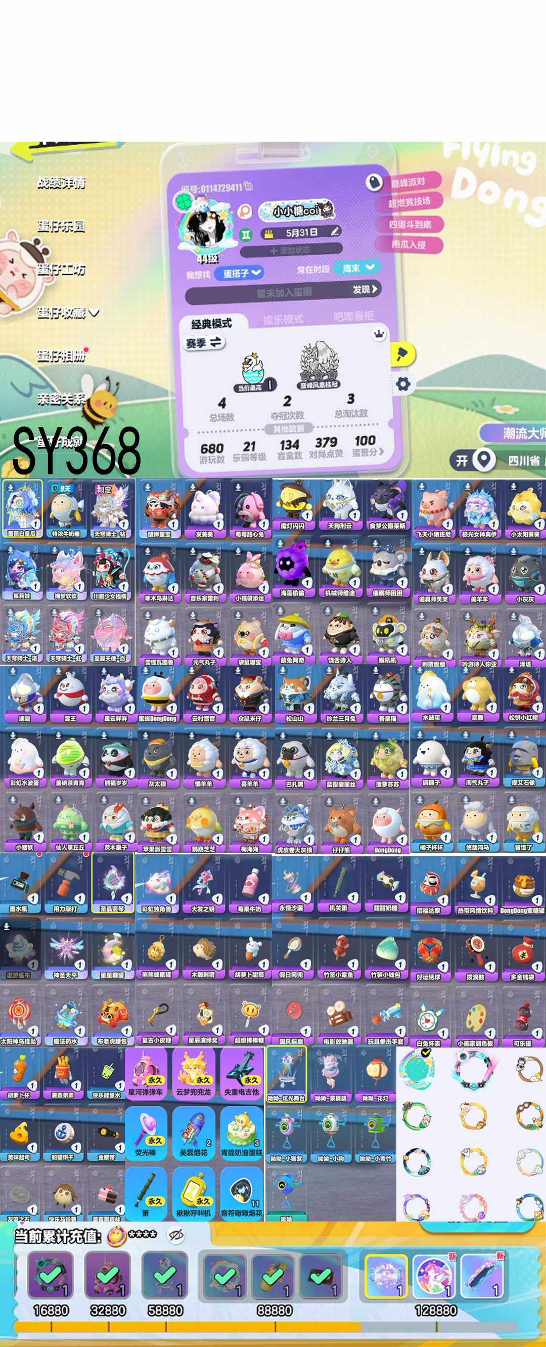 历史潮流:7.8万段位:4阶鹅蛋等级:44级性别:女幻彩套装数量:9