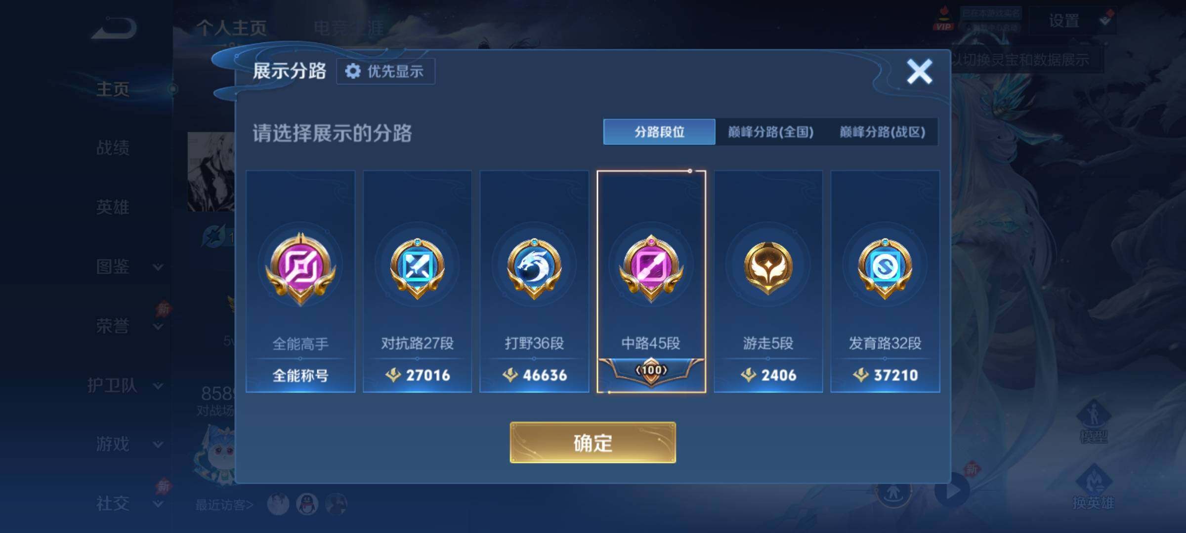 可换绑 【精品战力号·中路45段·打野36段·小国貂蝉1.37w·金标韩信1.1
