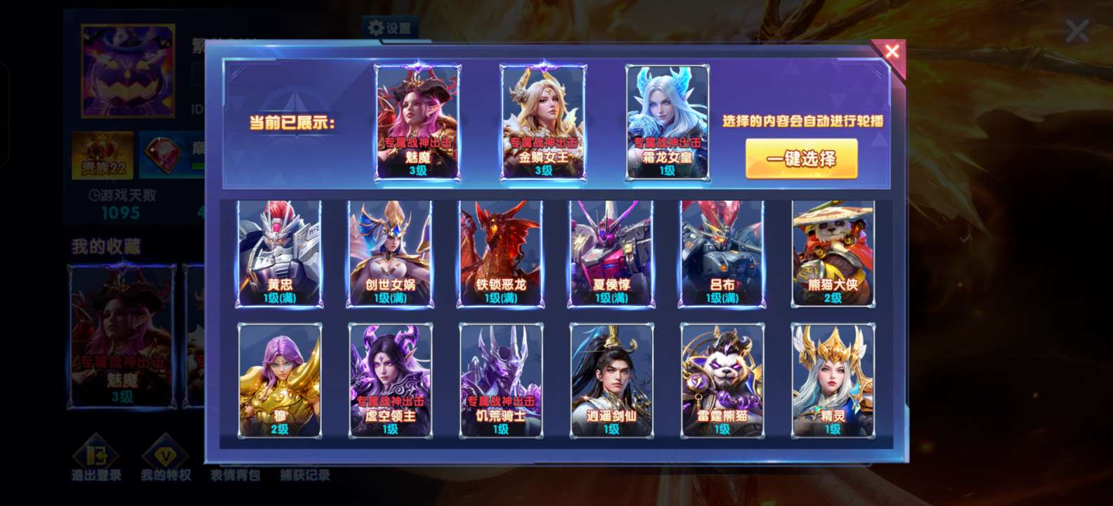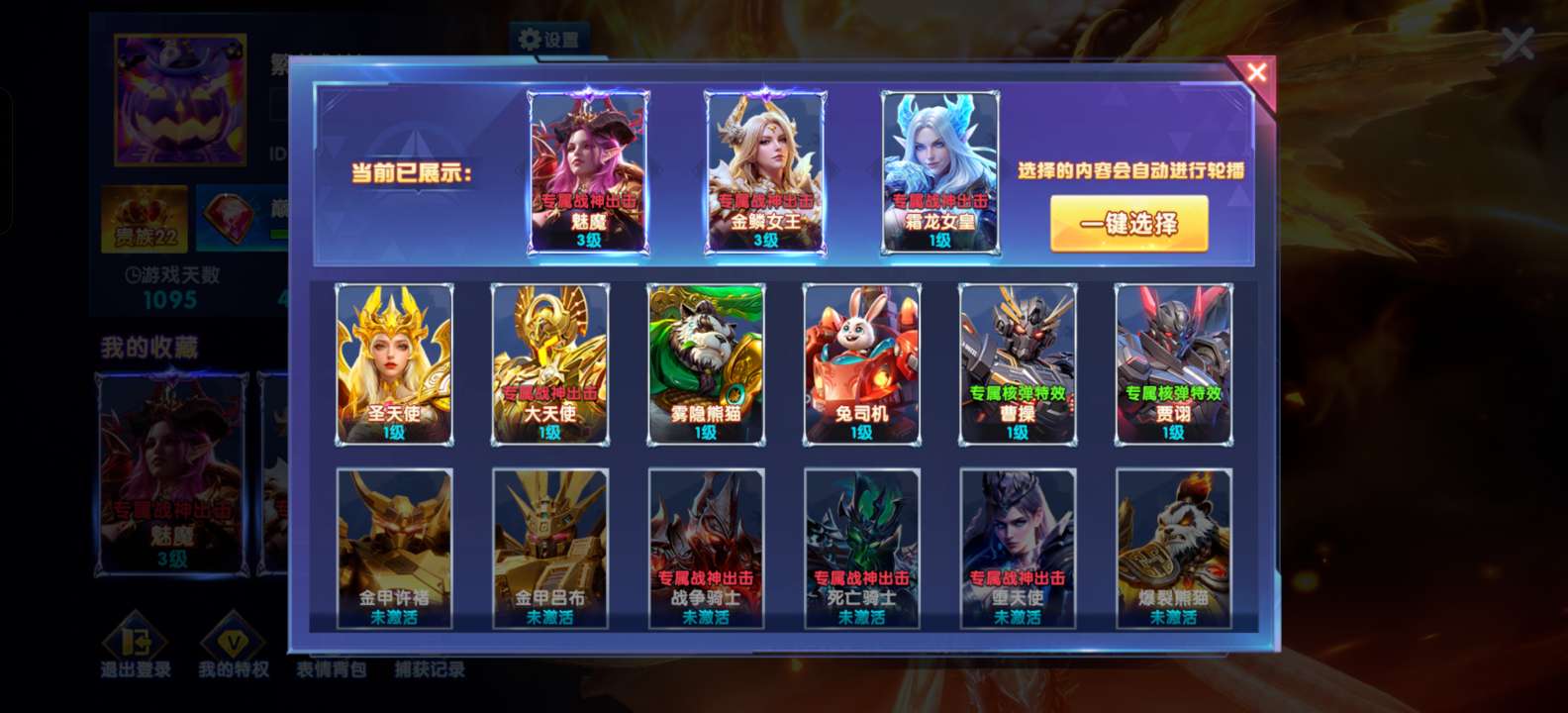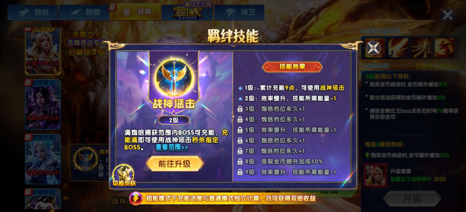 OPPO贵族22、3个新战神、3级魅魔、翅膀和炮台很少后期可以慢慢白嫖提升加成