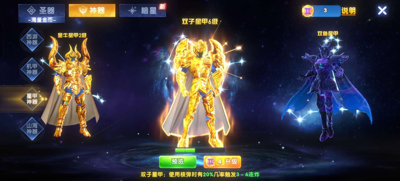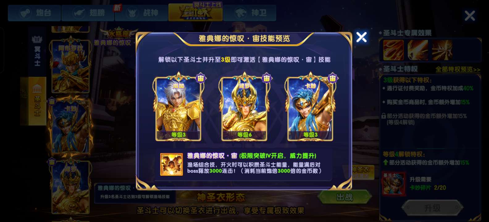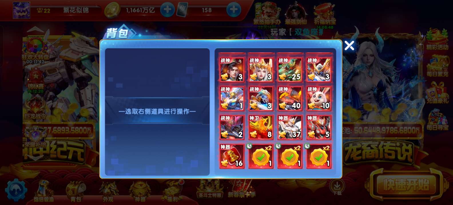 OPPO贵族22、3个新战神、3级魅魔、翅膀和炮台很少后期可以慢慢白嫖提升加成