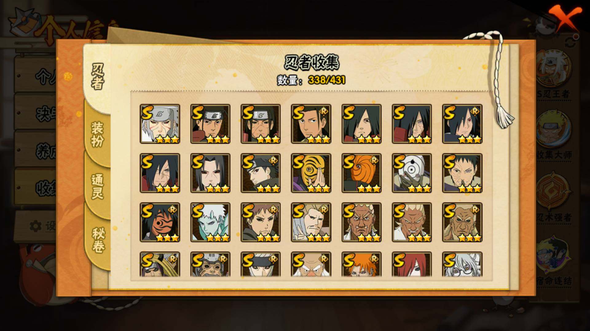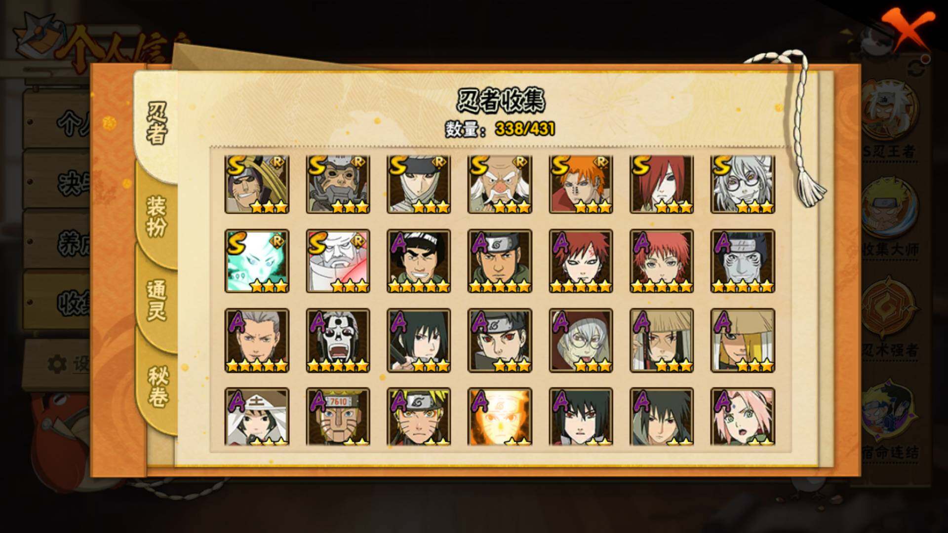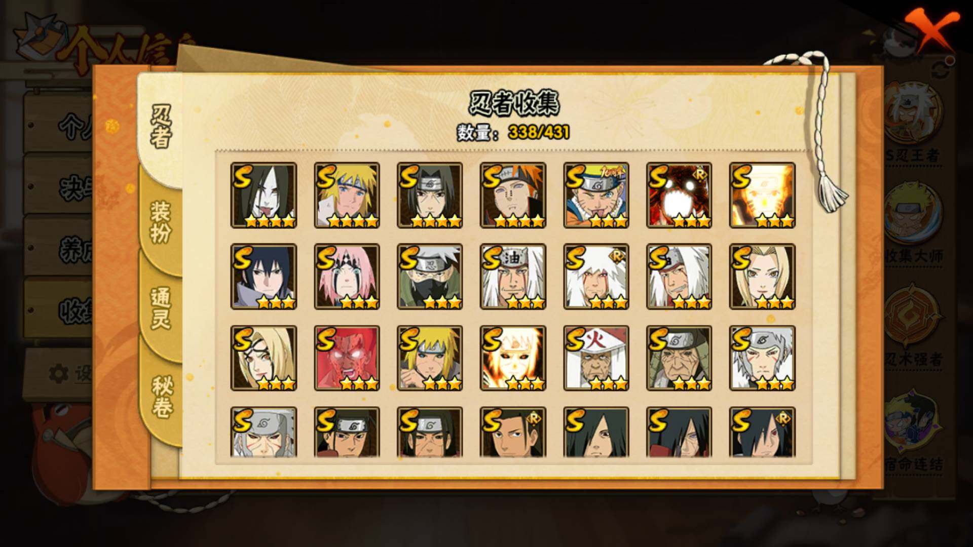 【S级忍者】:长门「秽土转生」(3星),半藏「秽土转生」(3星),金角·银角「秽土转生」(3星),猿飞日斩「秽土转生」(3星),波风水门「秽土转生」(3星),千手扉间「秽土转生」(3星),千手柱间「