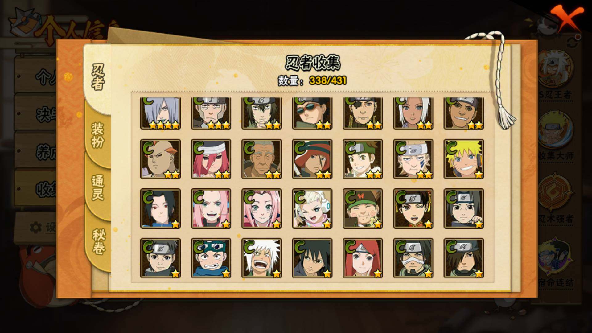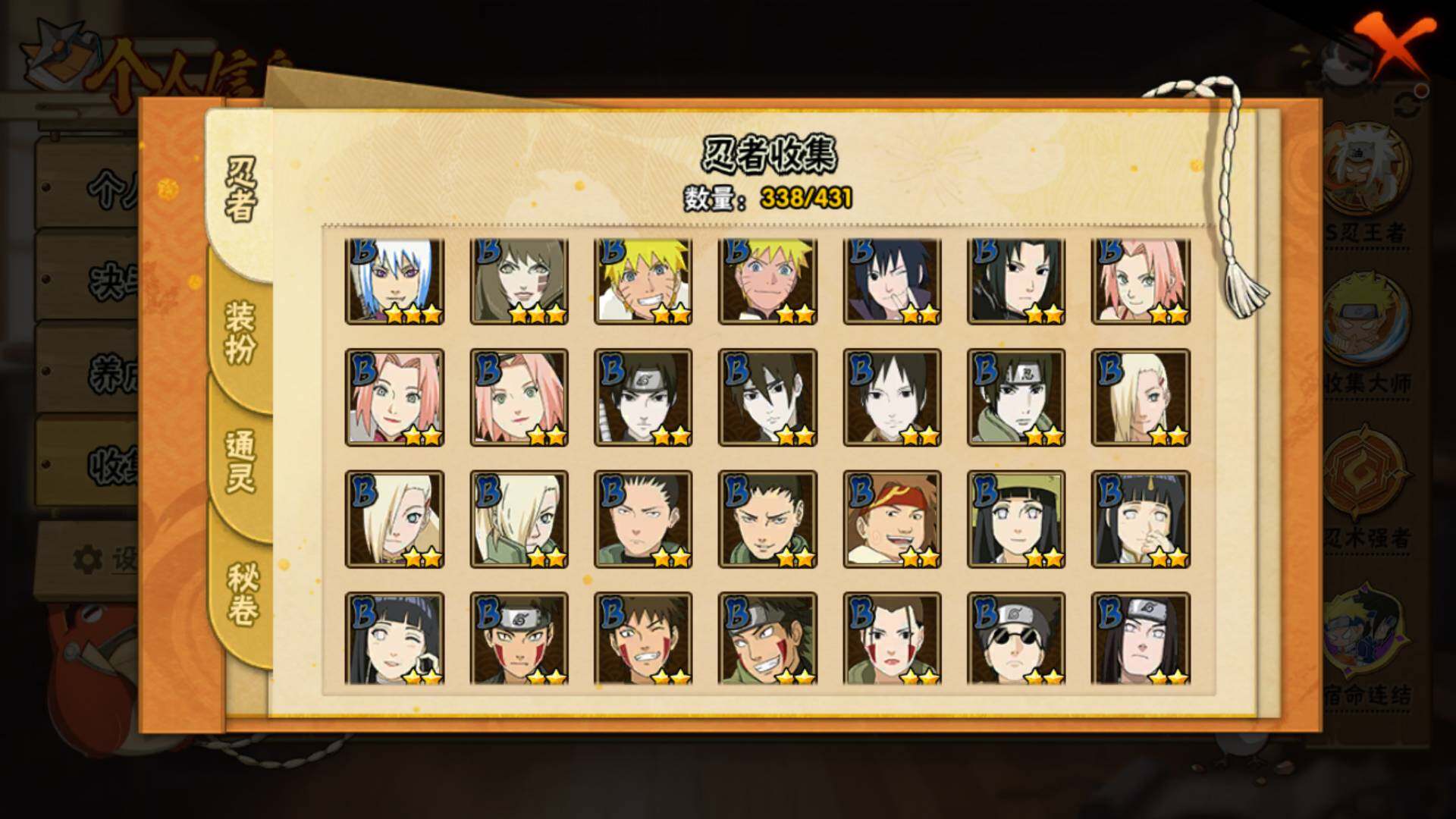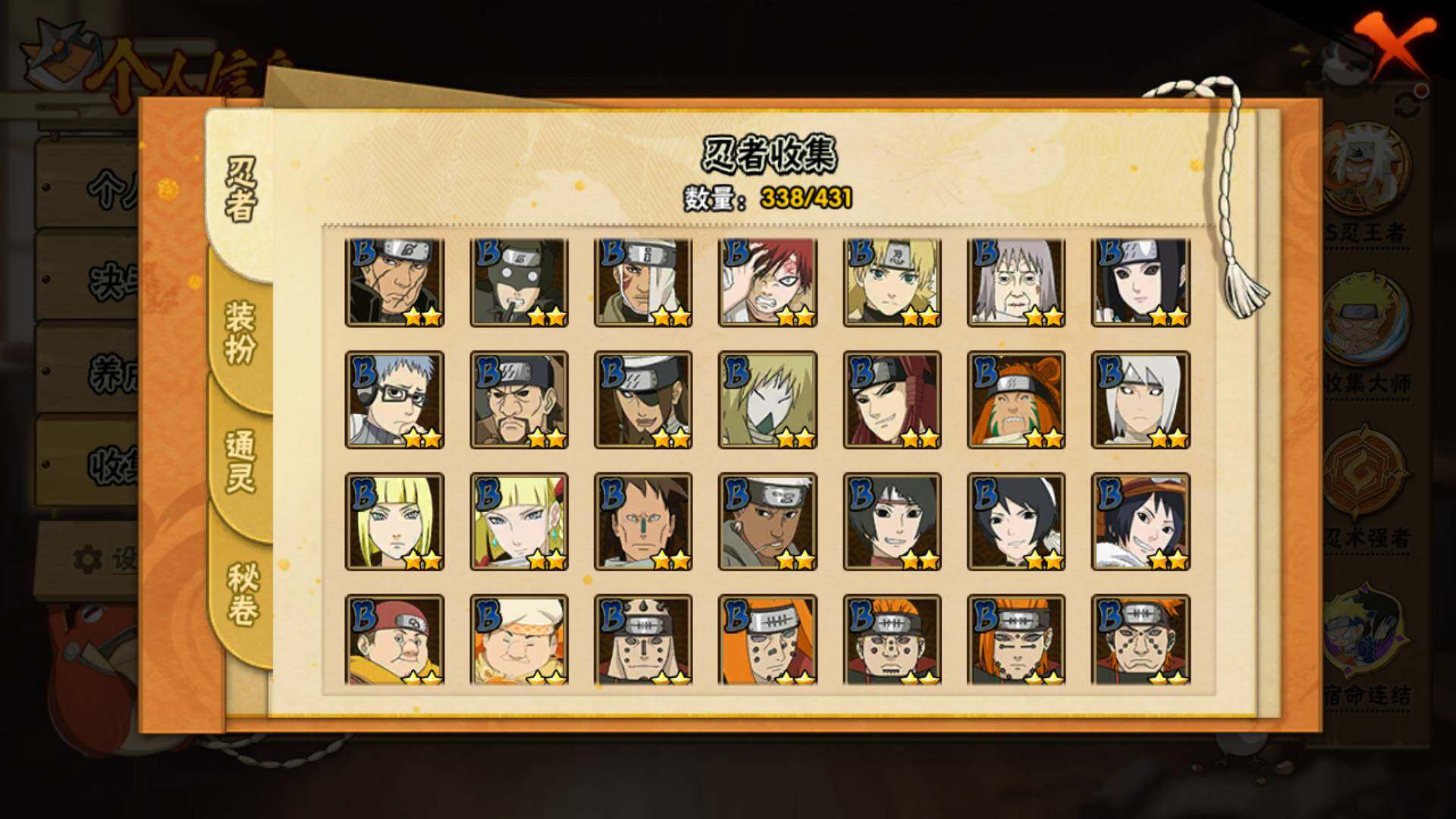 【S级忍者】:长门「秽土转生」(3星),半藏「秽土转生」(3星),金角·银角「秽土转生」(3星),猿飞日斩「秽土转生」(3星),波风水门「秽土转生」(3星),千手扉间「秽土转生」(3星),千手柱间「