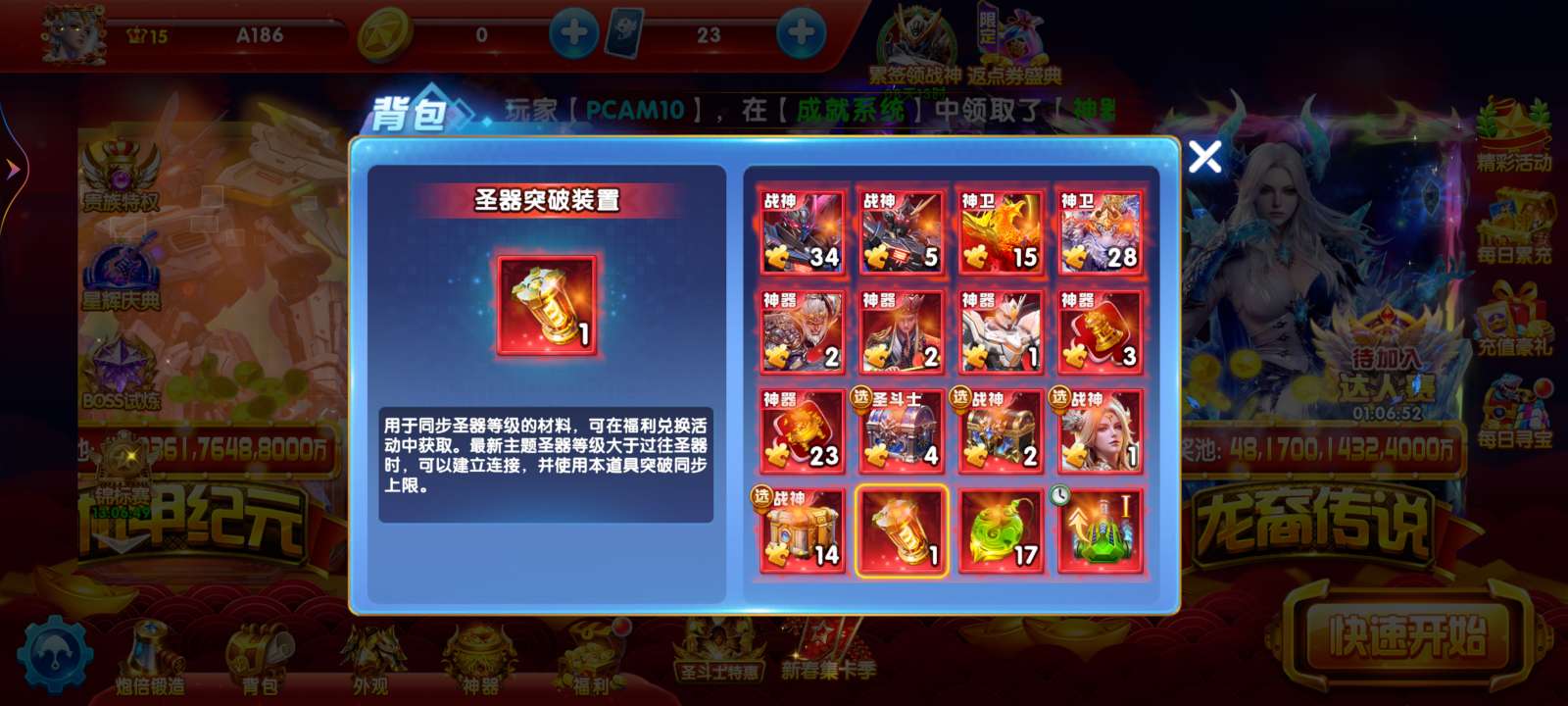 vivo渠道v15加成1657,纯救济2兆多,11套西游99机甲999神器954神卫54。