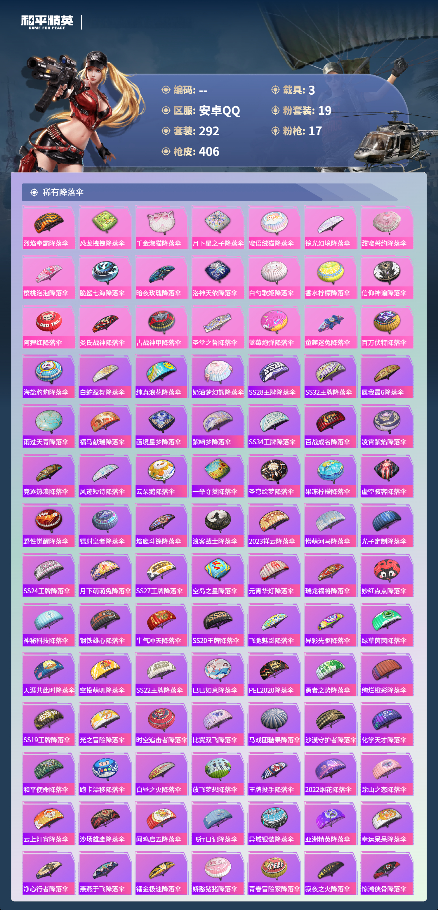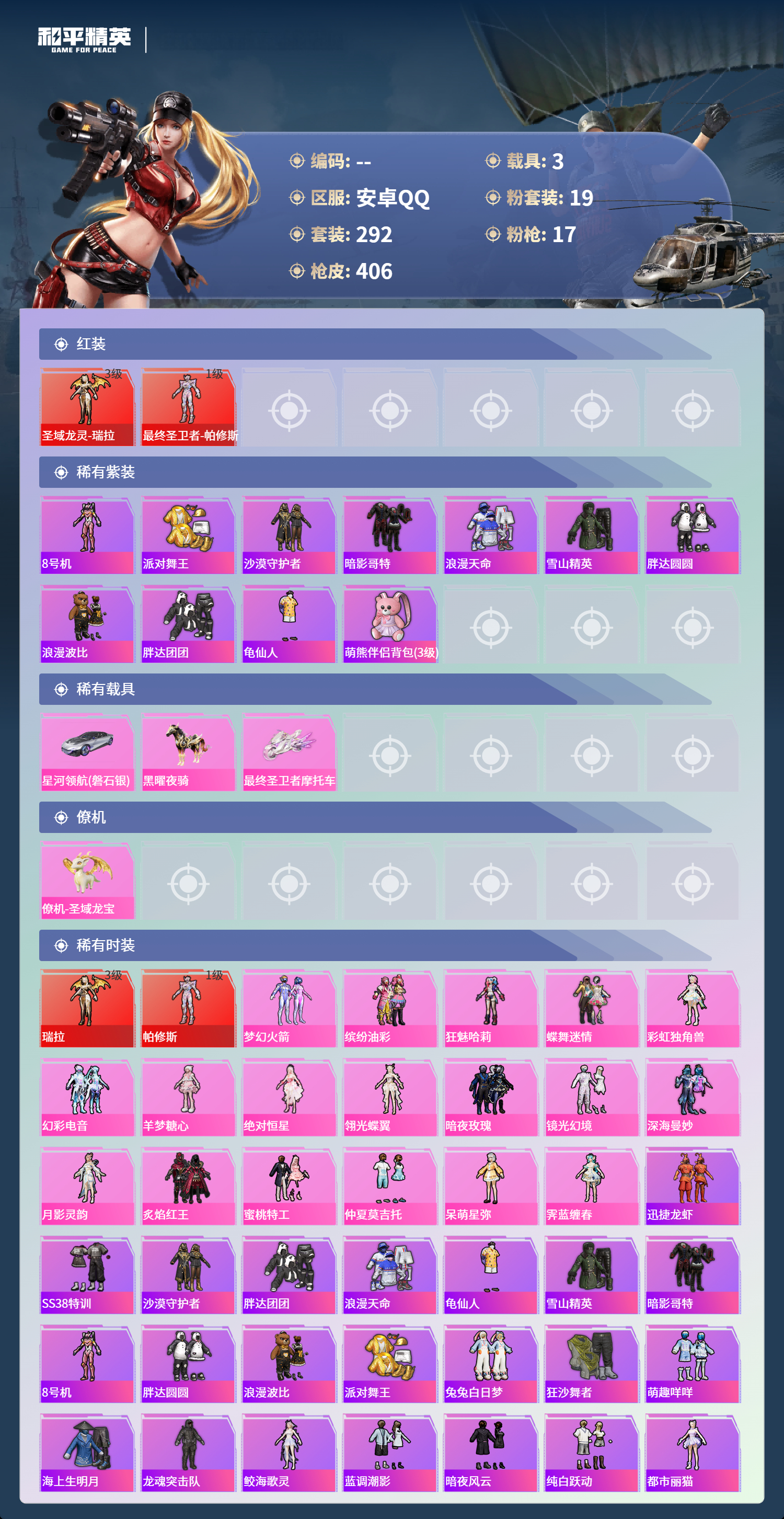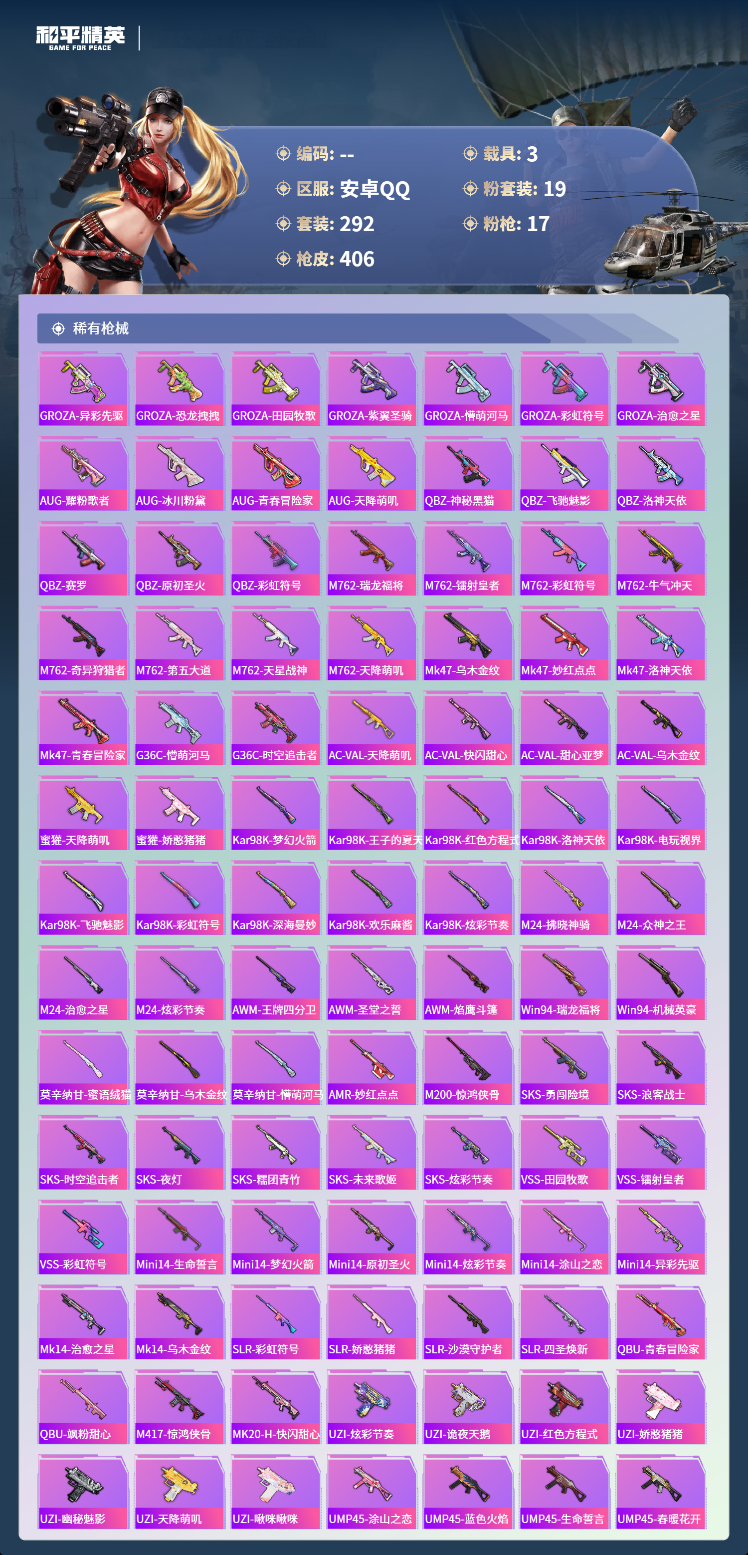 安卓手Q-13王牌印记-2红装-19粉装-17特效枪-3载具-热力