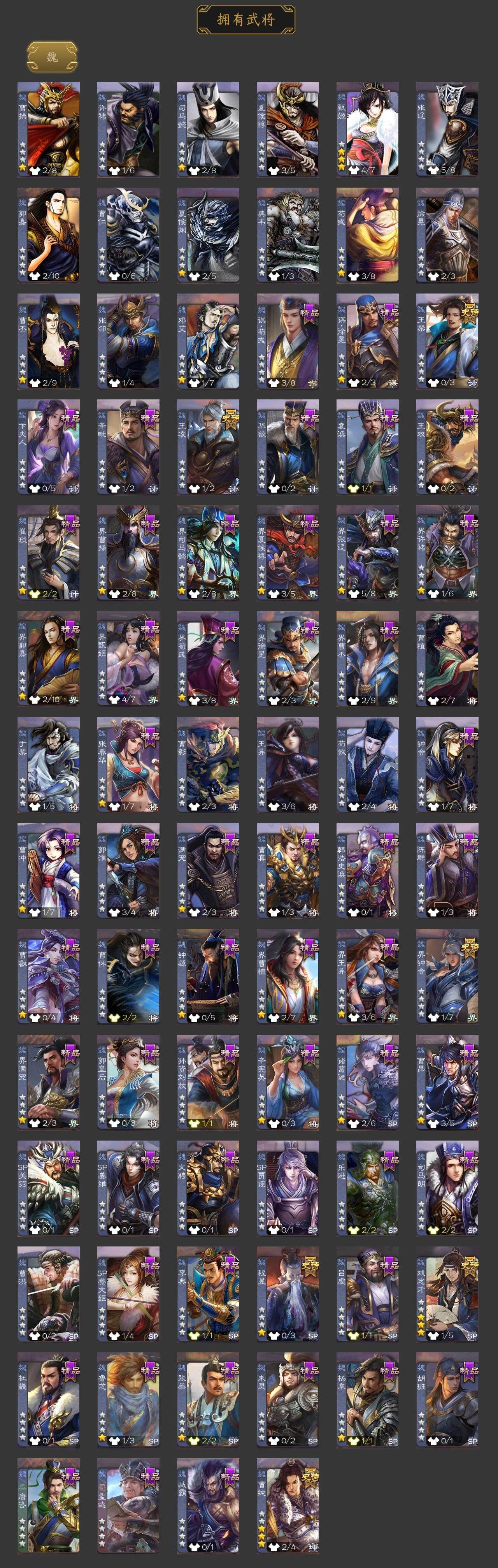 神赵云,神陆逊,神刘备,神甘宁,王粲,王凌,界钟会,曹纯,戏志才,程昱,谋诸葛亮,谋马超,诸葛瞻,沙摩柯,花鬘,董允,留赞,界徐盛,界沮授,张让,星黄忠,麹义,沮授,界左慈,界李儒