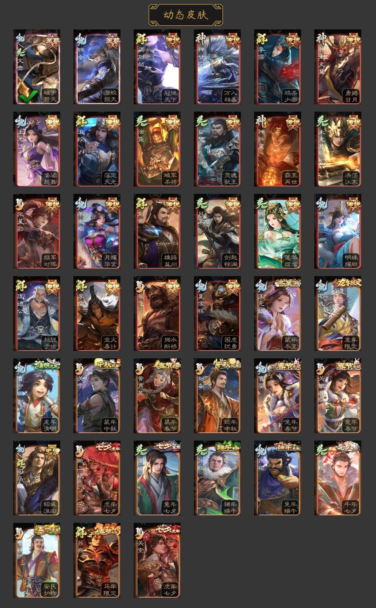 神吕布,神赵云,神甘宁,神太史慈,神孙策,神诸葛亮,曹髦,星周不疑,王粲,羊徽瑜,王元姬,界钟会,郝昭,陈琳,曹婴,曹纯,戏志才,程昱,关索,张星彩,沙摩柯,谯周,界黄忠,花鬘,谋