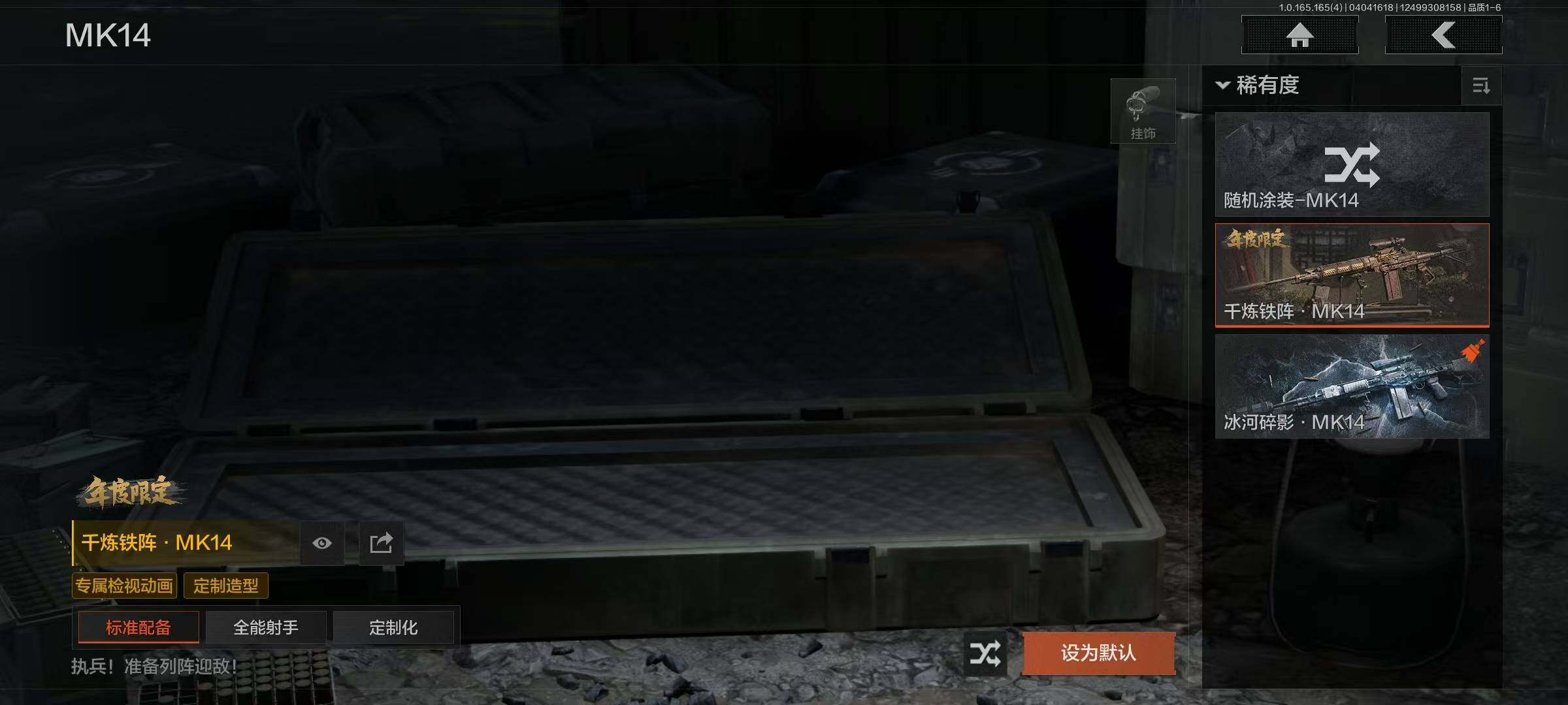 【AQZG2033】等级:30/段位:大师/仓库价值(百万):86/柯恩币:83449716/裁决手杖剑/急袭弯刀/工兵铲/来战开山刀/热能武器补牢/苍穹利爪/赤火炉心/白蔷薇斯黛拉/蝮蛇/使徒欧瑞恩/苍白隐者伪装服/钢铁壁垒作战服/竞技风潮M4A1/伦琴幻影FAL/林中人FAL/镀火熔金H416/告丧夜曲AUG/告丧夜曲AR57/旗帜AEK/浮鳞影青QBZ192/利齿风暴MPX/旧王圣谕QBZ191/冰河碎影MK14/千炼铁阵MK14/旧王圣谕VSS/骑士之剑VSS/伦琴幻影AX50/冲刺极限