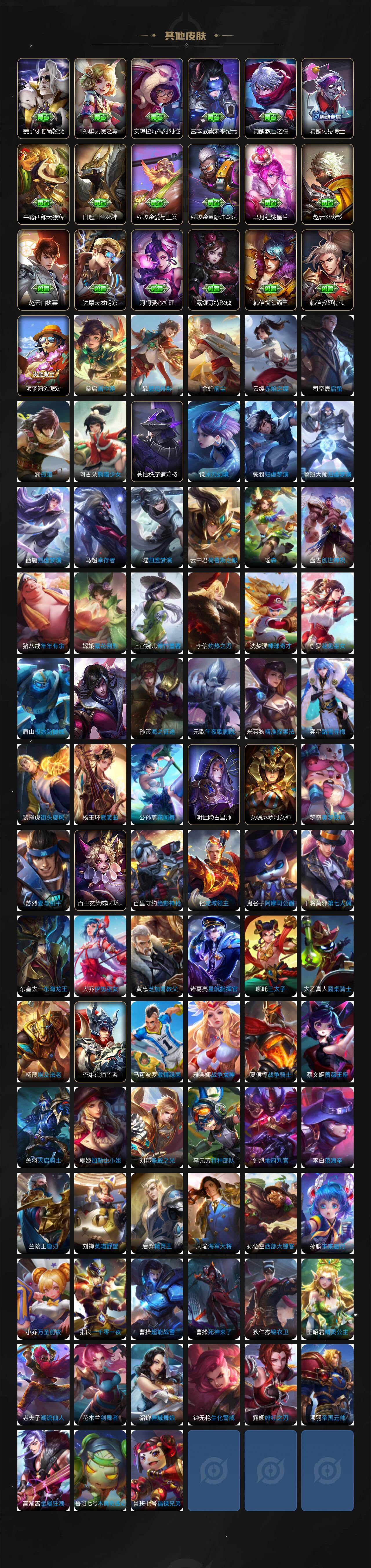 【16776784】贵族10/皮肤448/典藏4/传说52/史诗141/英雄130/刘邦全皮/孙权全皮/苍全皮/东皇太一全皮/敖隐全皮/空空儿全皮/影全皮/武则天/夏侯惇-无限飓风号/芈月-大秦宣太后/李白-鸣剑·曳影/诸葛亮-星域神启/曜-器灵·螭龙剑/甄姬-雪境奇遇/小乔-时之魔女/鲁班七号-江户川柯南/马可波罗-怪盗基德/云缨神骥越千峰/朵莉亚神骥鸣幻洲/后羿神
