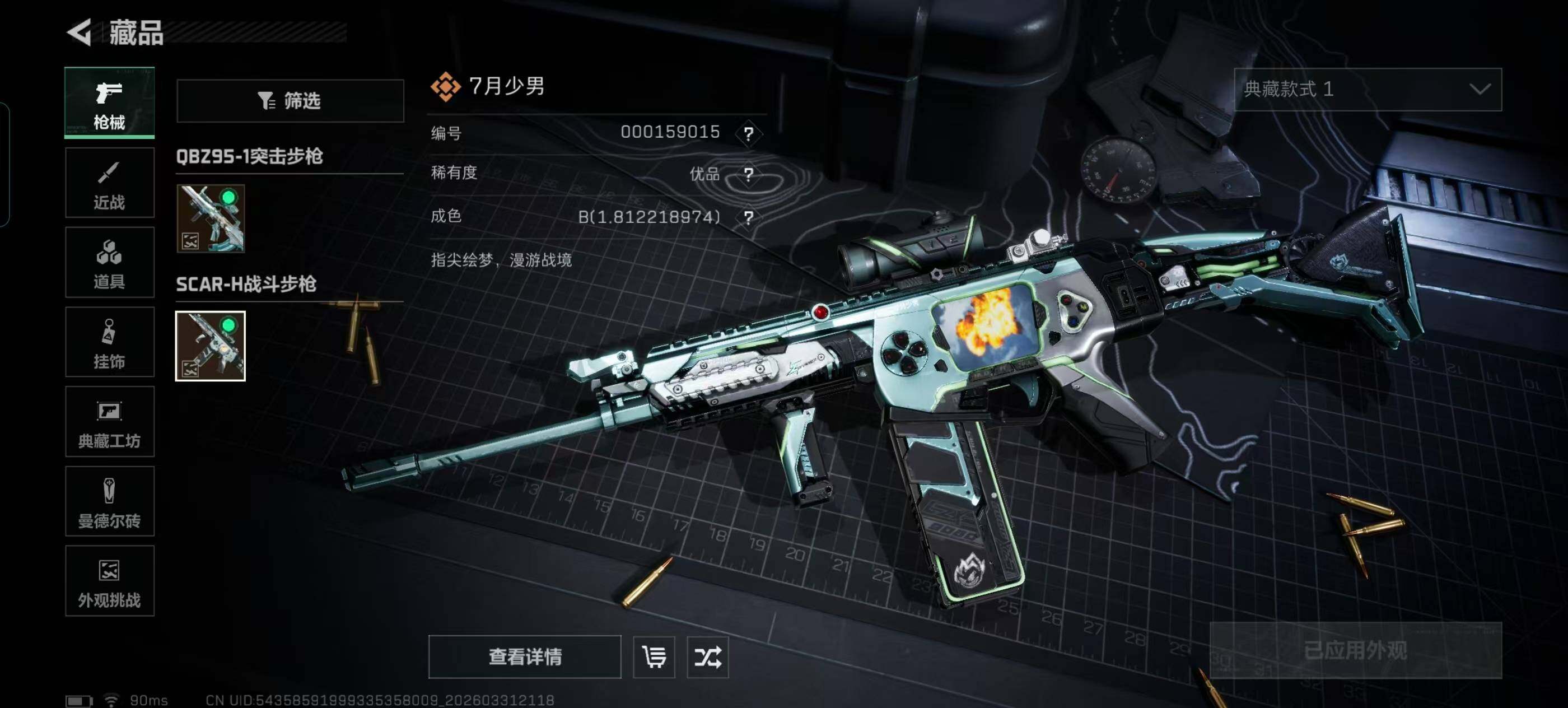 【典藏外观成色】:SCAR-H战斗步枪-电玩高手(优品B),QBZ95-1突击步枪-王牌之剑(优品A)