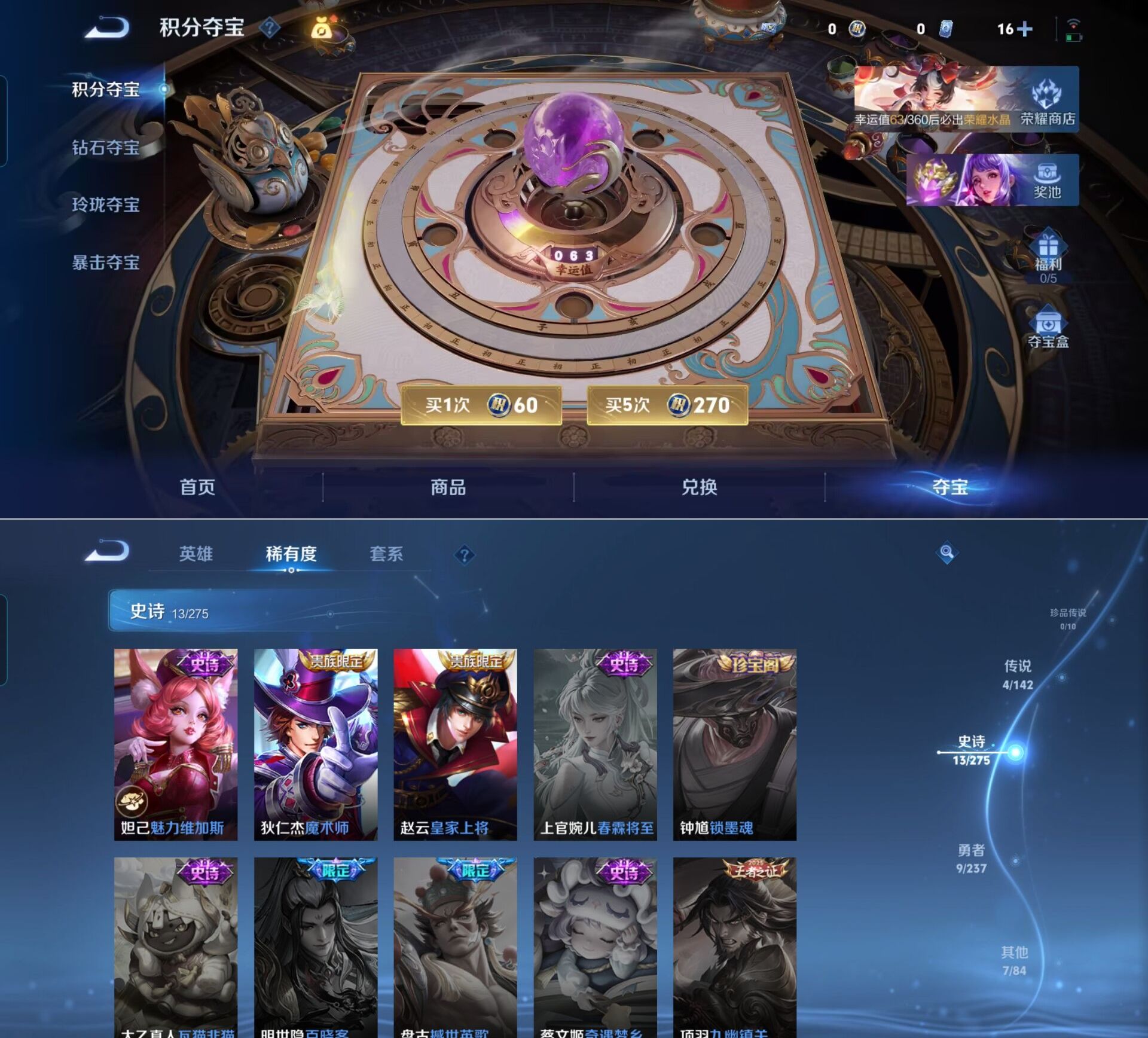 【史诗皮肤】 巫礼祀神 诗语江南 线条小狗 线条小狗 幽灵船长 魅力维加斯 魔术师 修罗 曙光守护者 暗隐猎兽者 晚萤 皇家上将