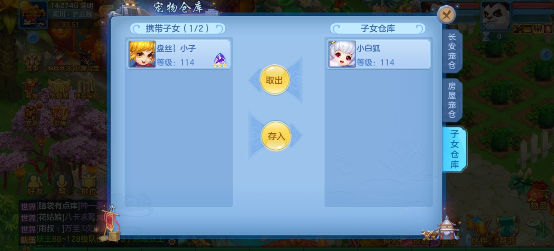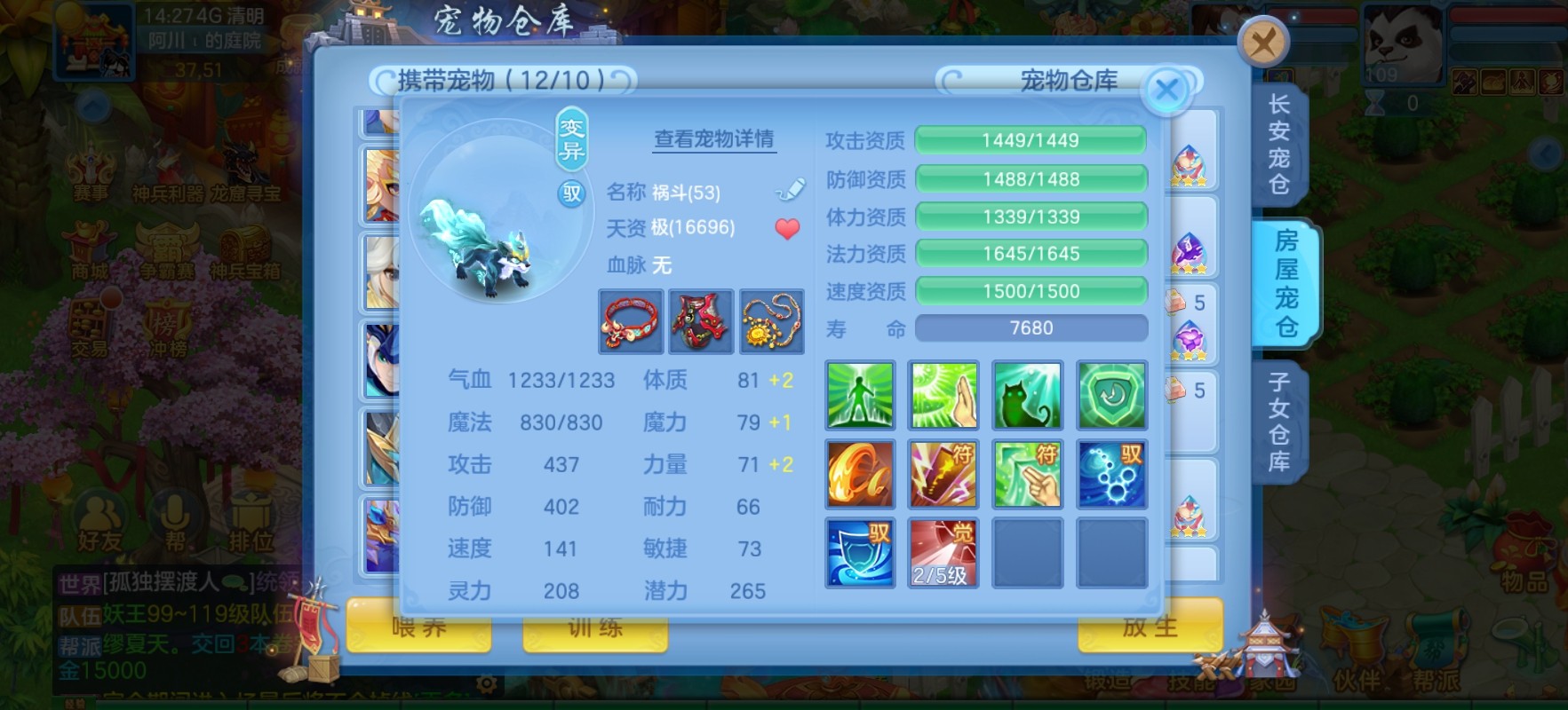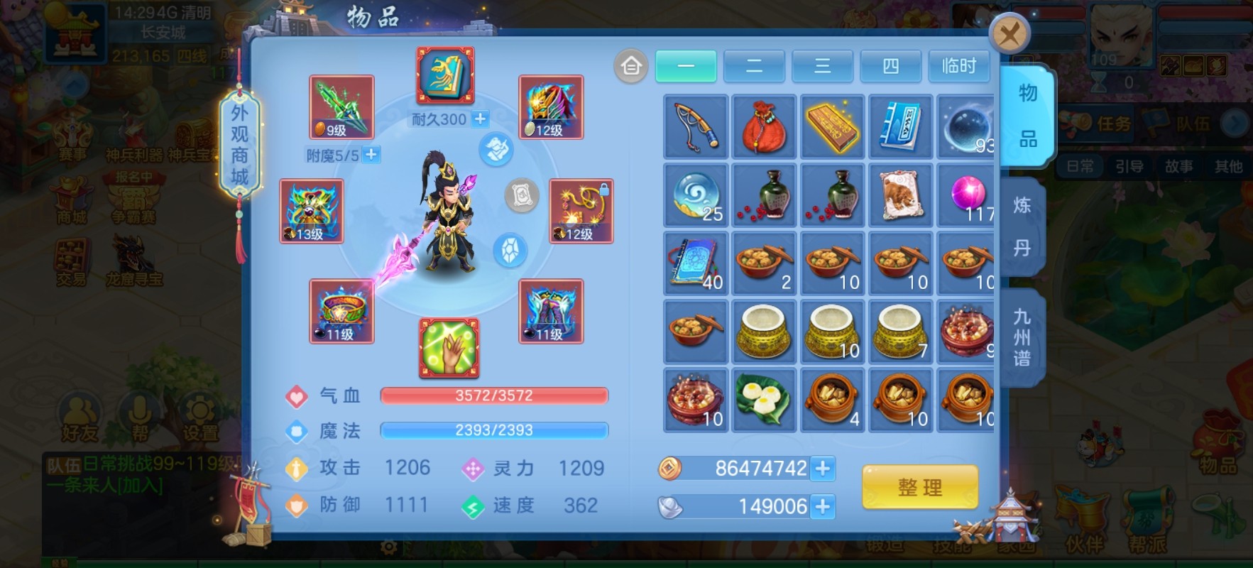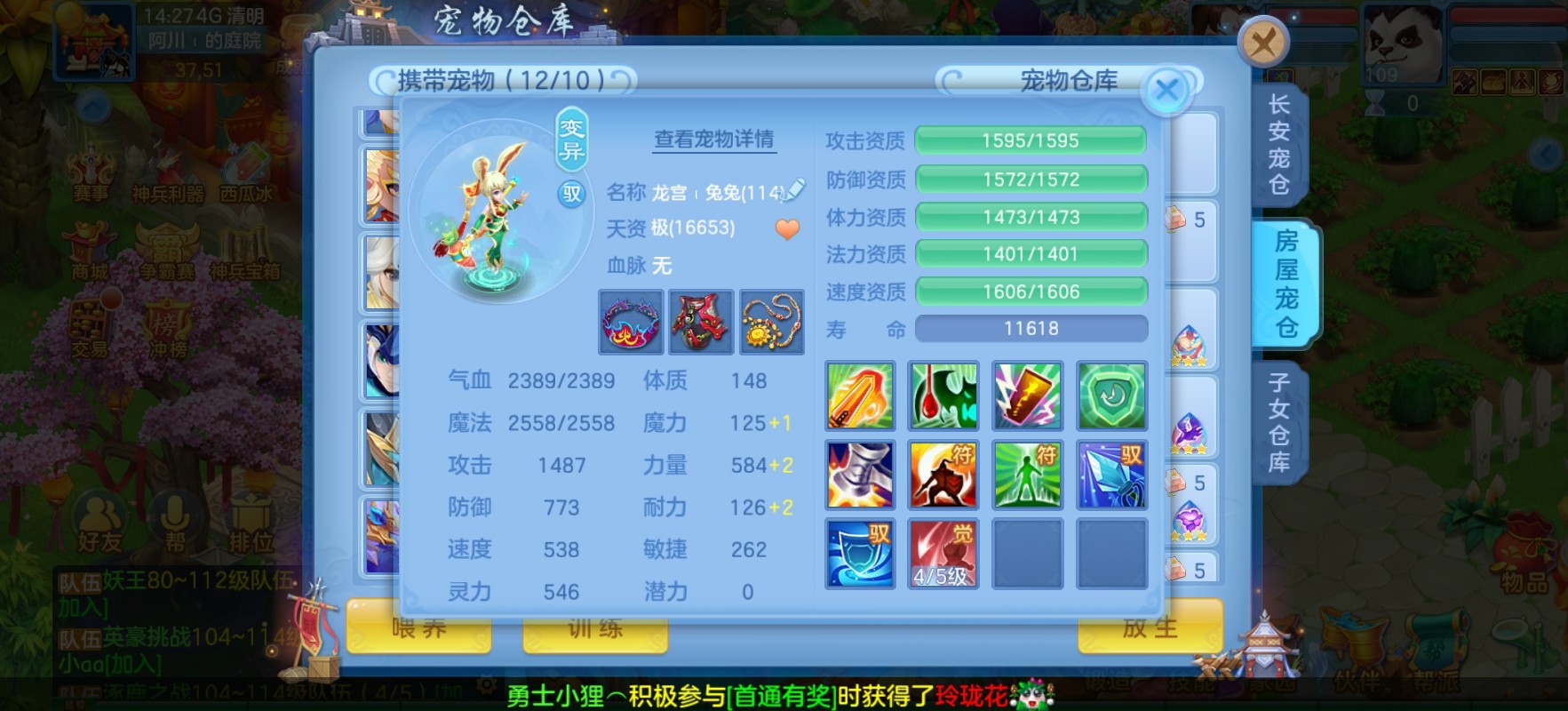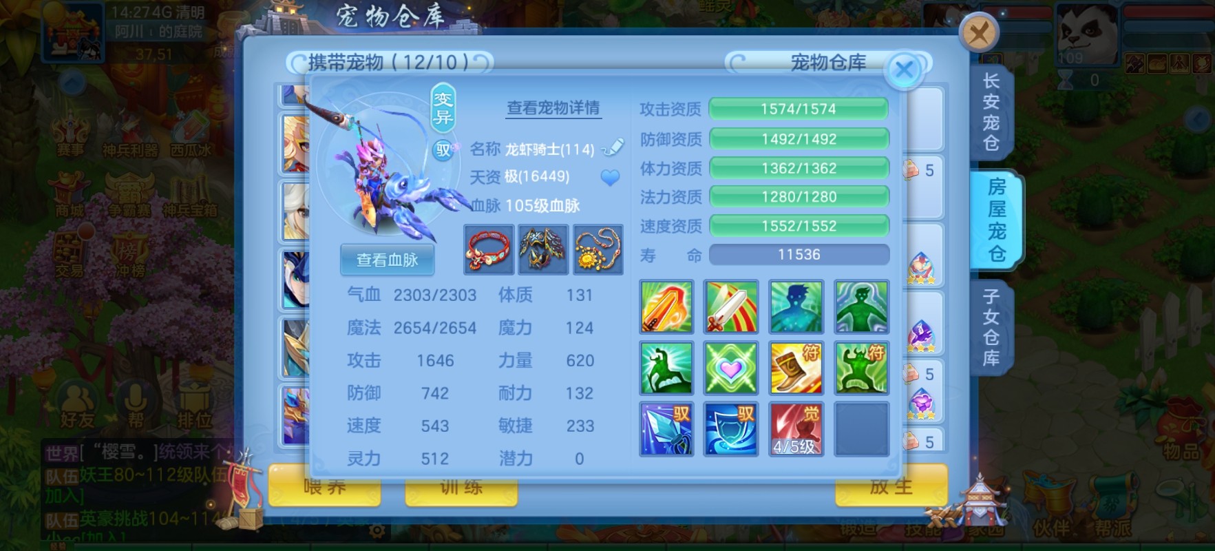 109满段盘丝,旁边带13混12宝石龙宫,盘丝可飞身129,满官职,修炼能满,宝宝齐全