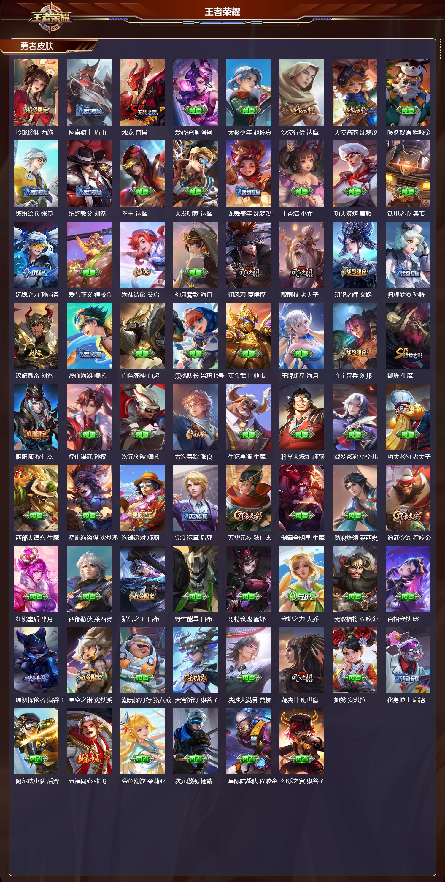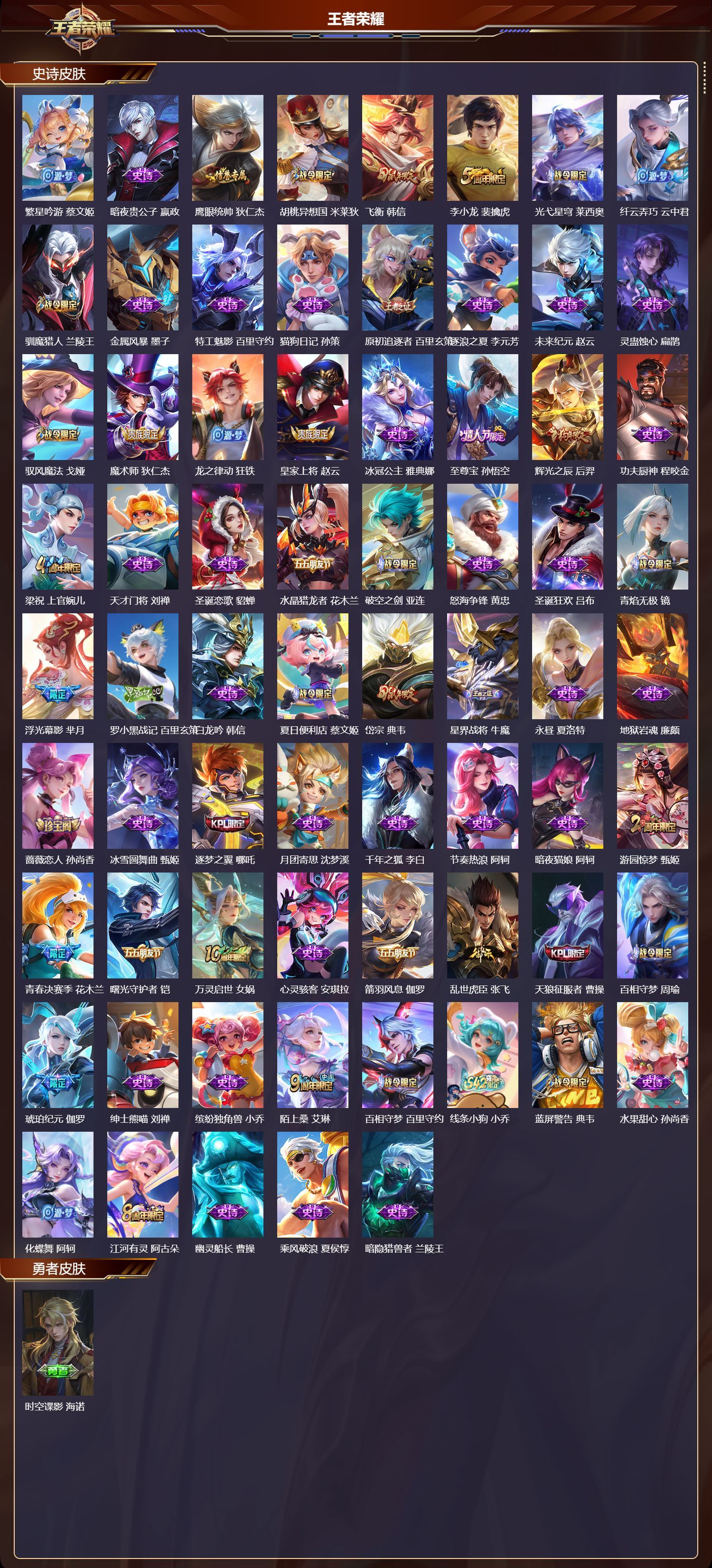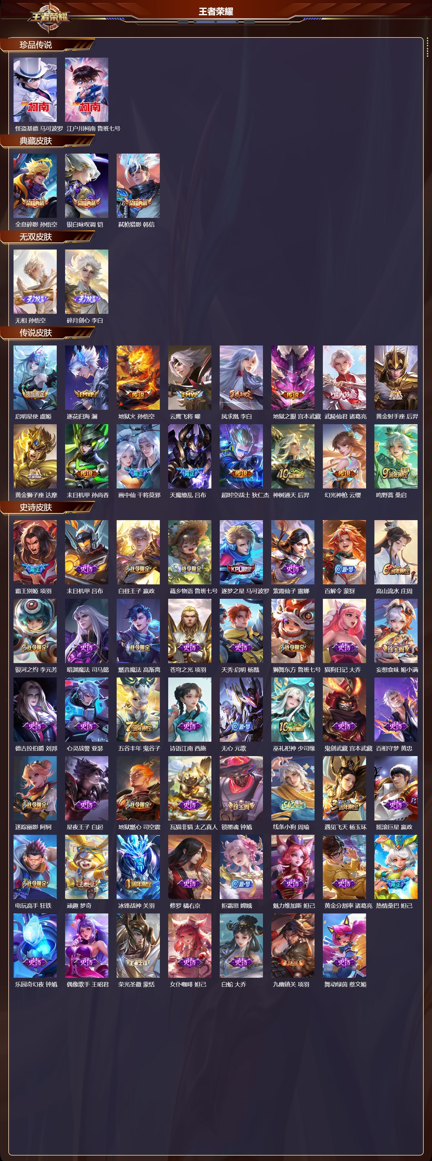 安卓QQ/至尊星耀/412皮肤/129英雄/3典藏/0珍品无双/2无双/2珍品传说/16传说/116