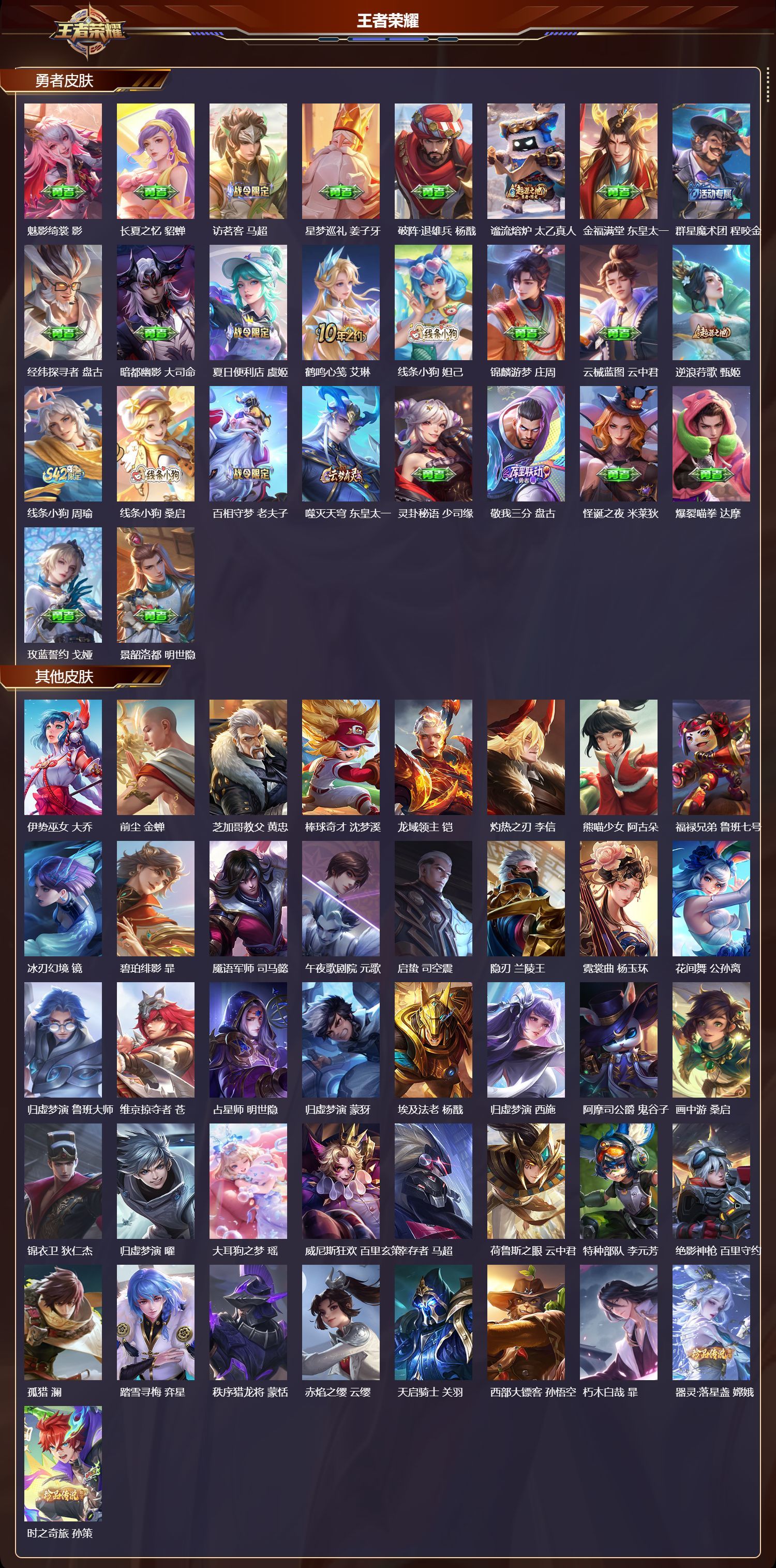 安卓QQ/非凡王者/341皮肤/129英雄/2典藏/0珍品无双/2无双/4珍品传说/43传说/105