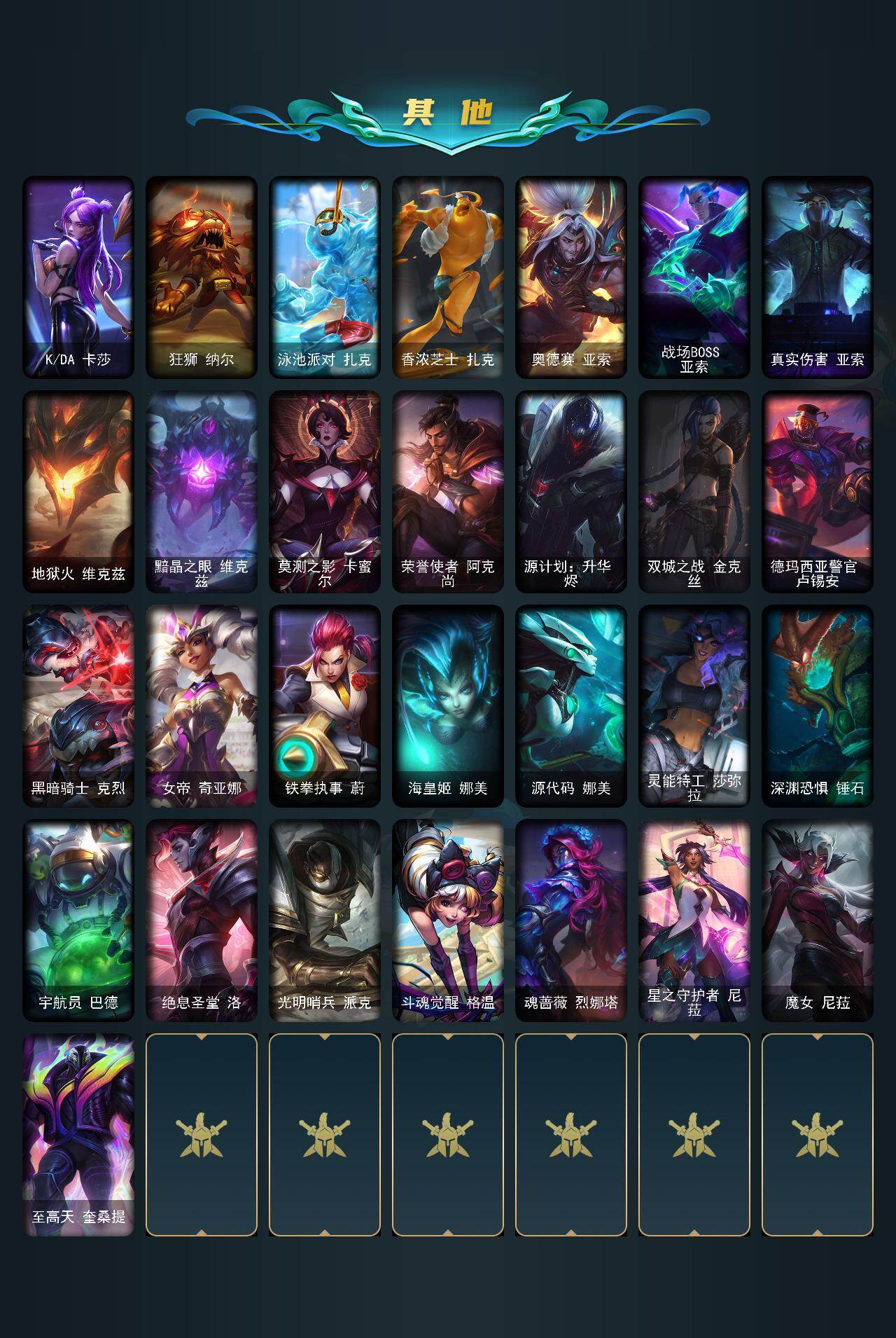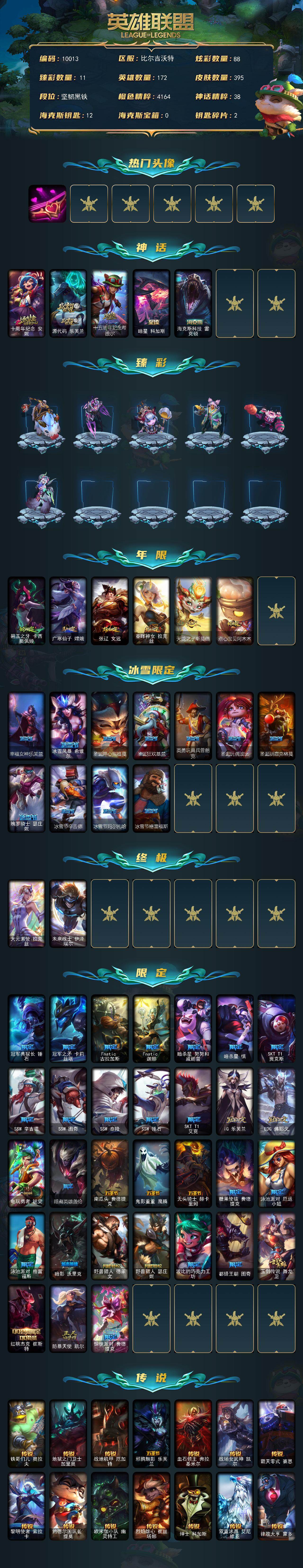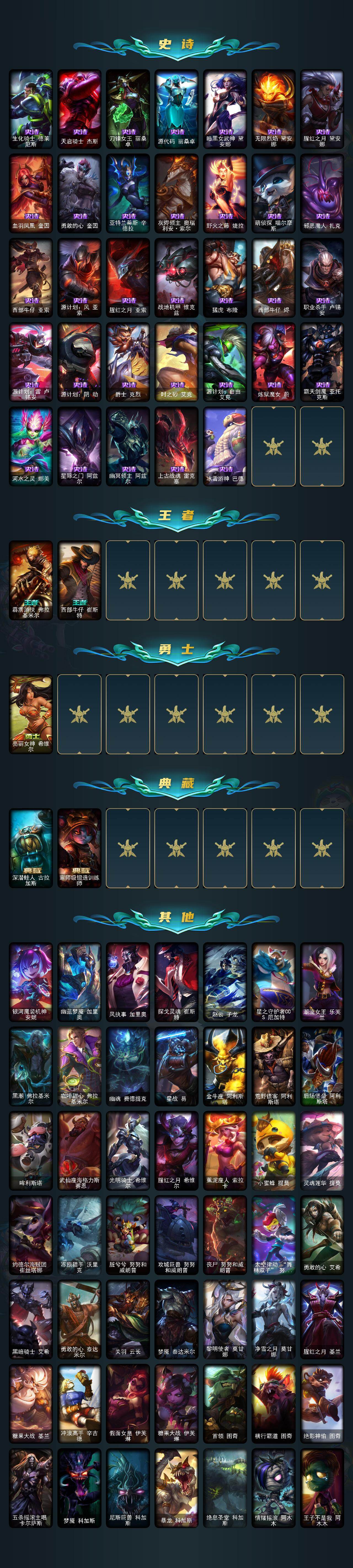 未定级段位-172英雄-395皮肤-88炫彩-2终极-5神话-48限定-41传说-110史诗