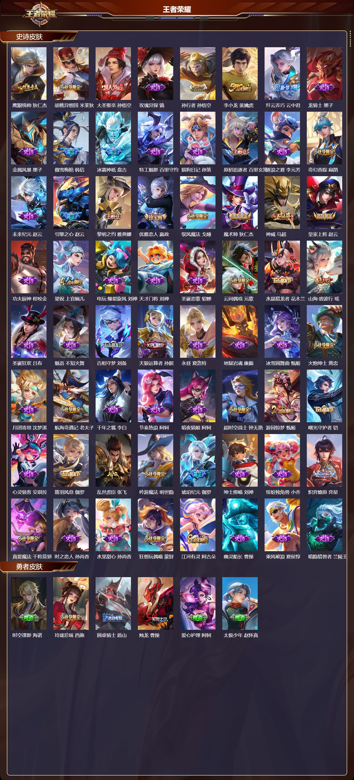 安卓QQ/永恒钻石/345皮肤/129英雄/4典藏/0珍品无双/0无双/0珍品传说/21传说/109史诗/9稀有英雄【4 典藏皮肤】鸣剑·曳影 李白,全息碎影 孙悟空,大秦宣太后 芈月,星域神启 诸葛亮,【21 传说皮肤】枫霜尽 橘右京,启明星使 虞姬,无双飞将 马超,白虎志 百里玄策,李逍遥 曜,地狱火 孙悟空,云鹰飞将 曜,地狱之眼 宫本武藏,默契交锋 兰陵王,鹤羽星尊 诸葛亮,时雨天司 诸