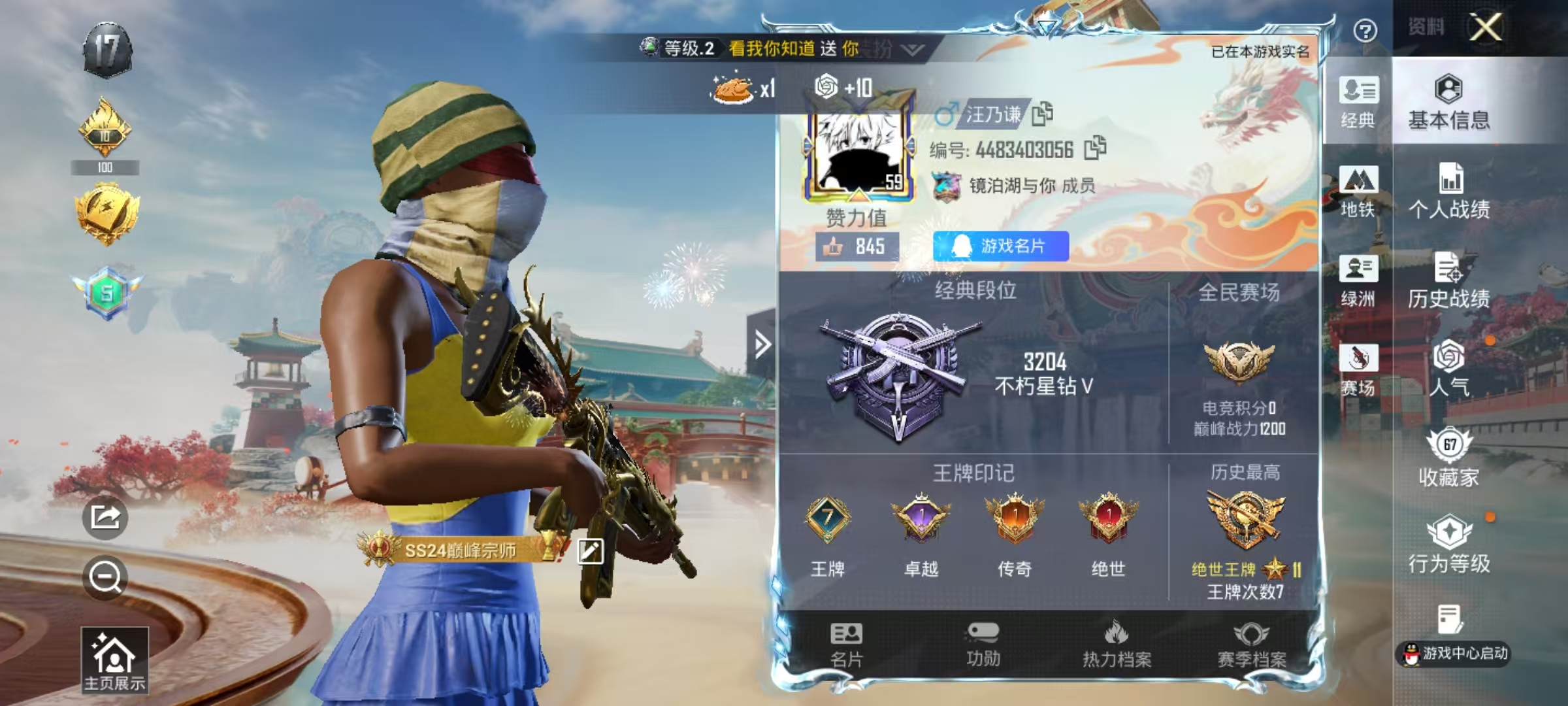 7王牌印记-7粉装-11特效枪-67136热力值-154套装-215枪皮-1卓越印记-1传奇印记