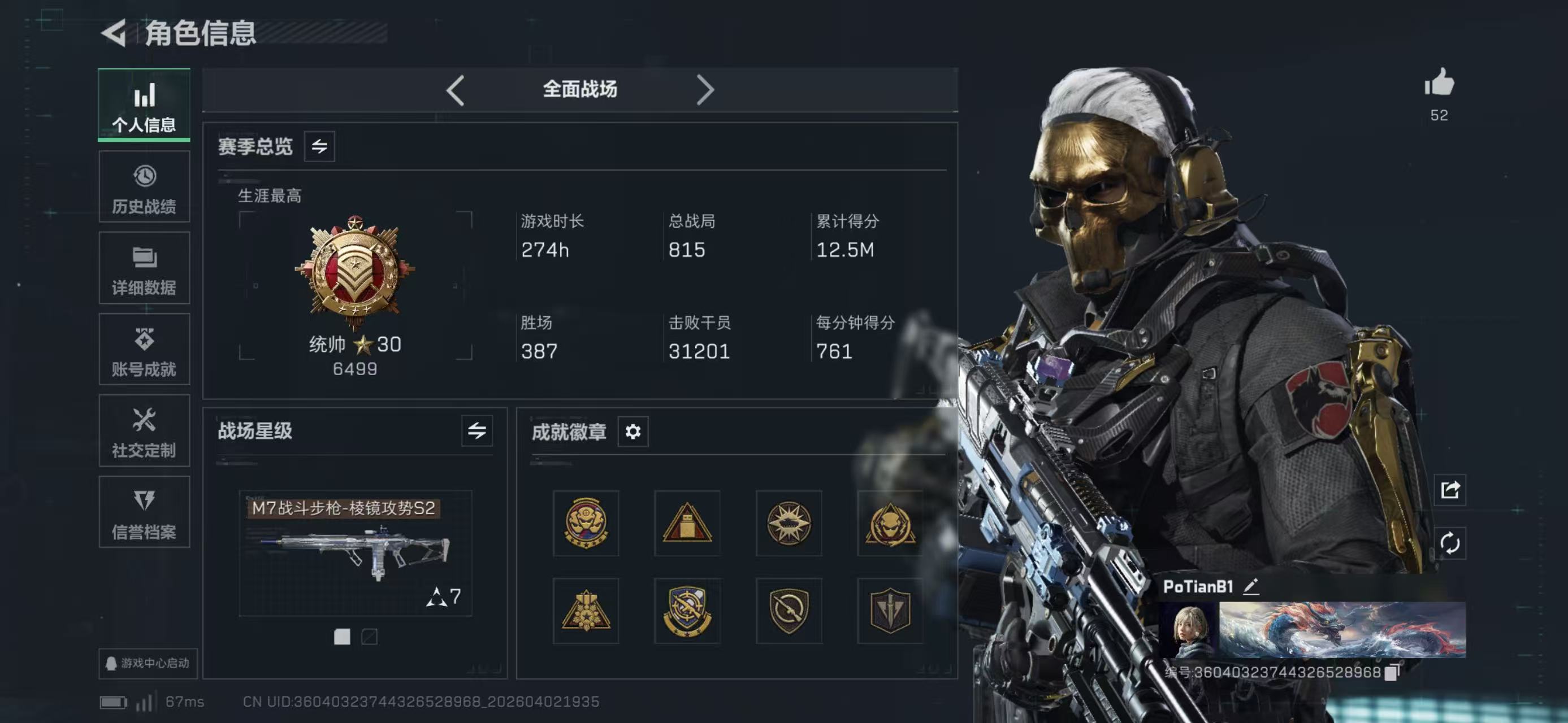 战场段位: