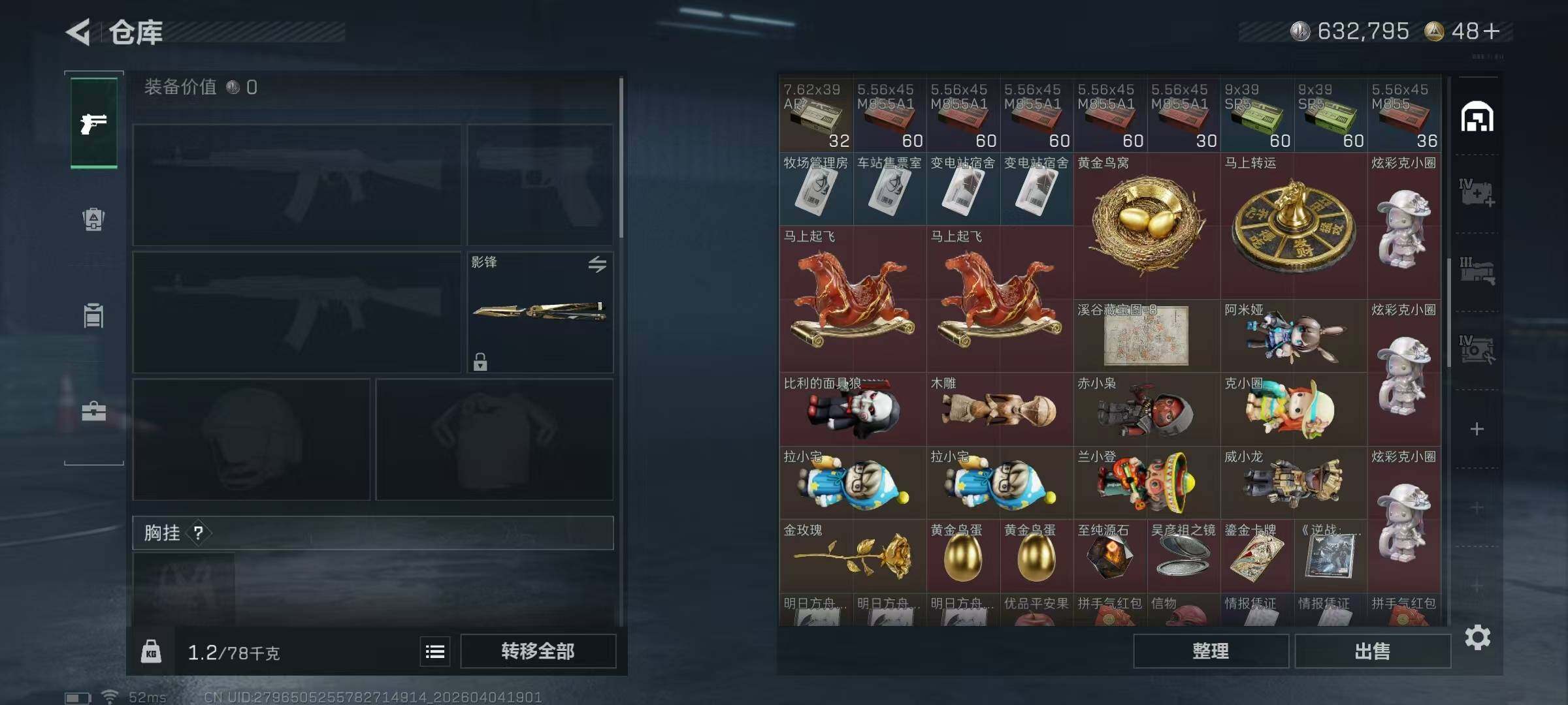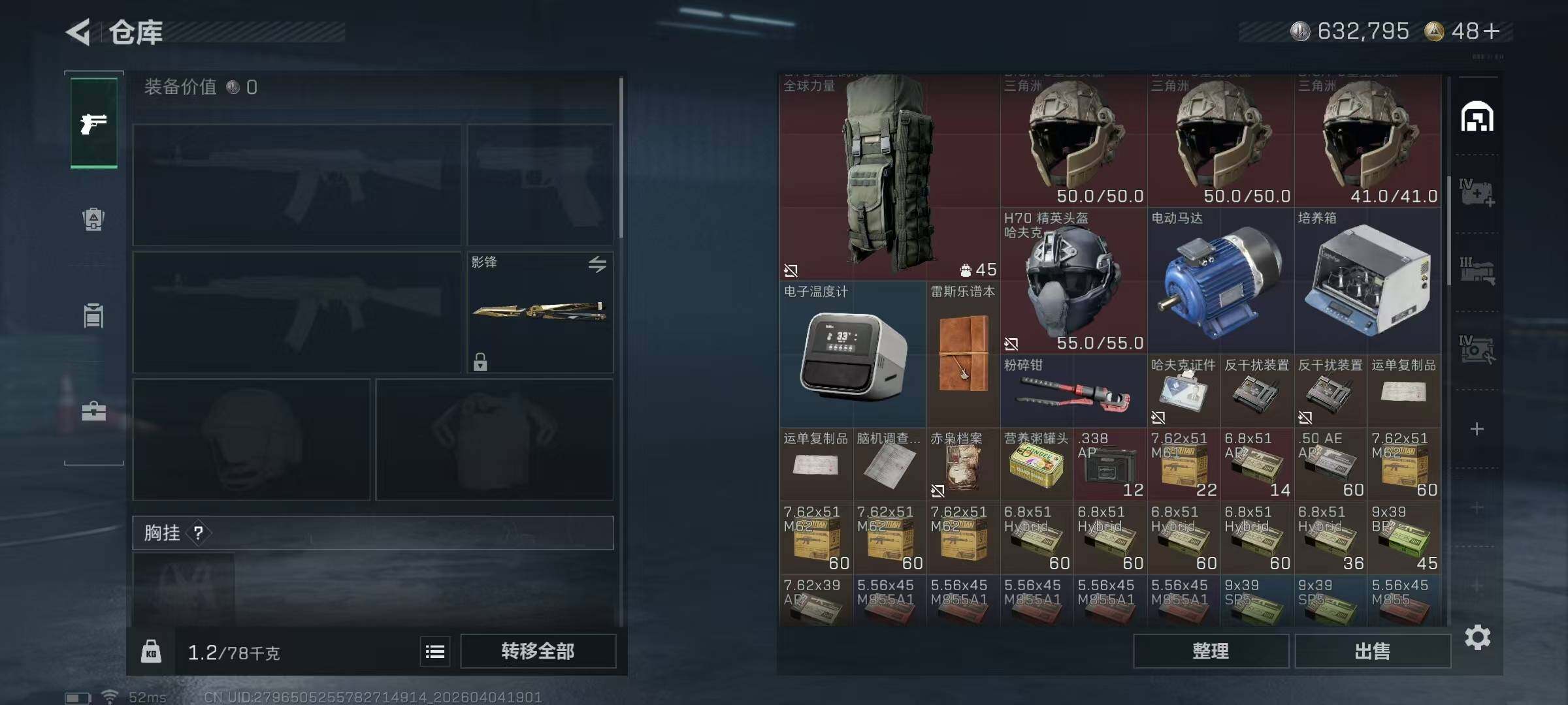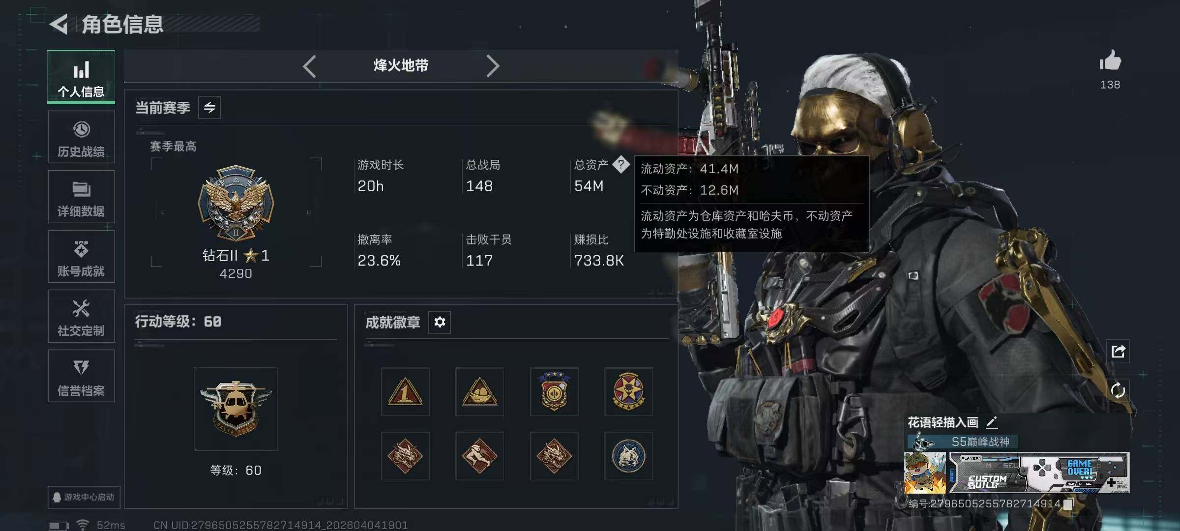 54m总资产-632k哈夫币-60烽火等级-钻石-28战场等级-列兵【干员外