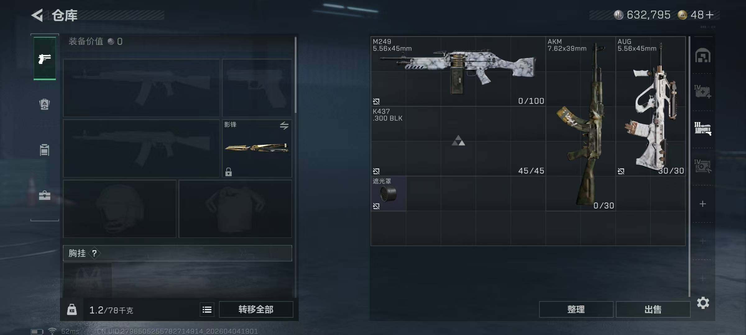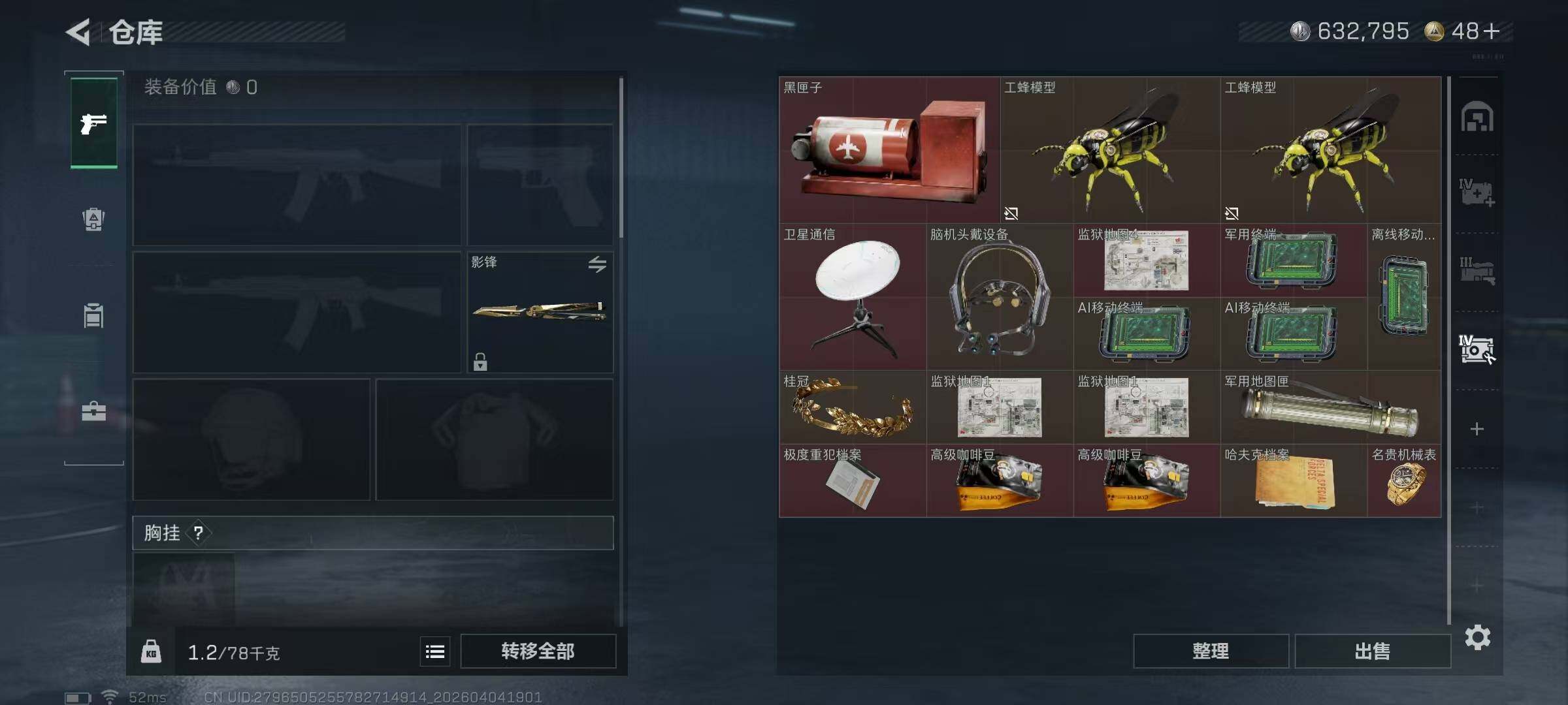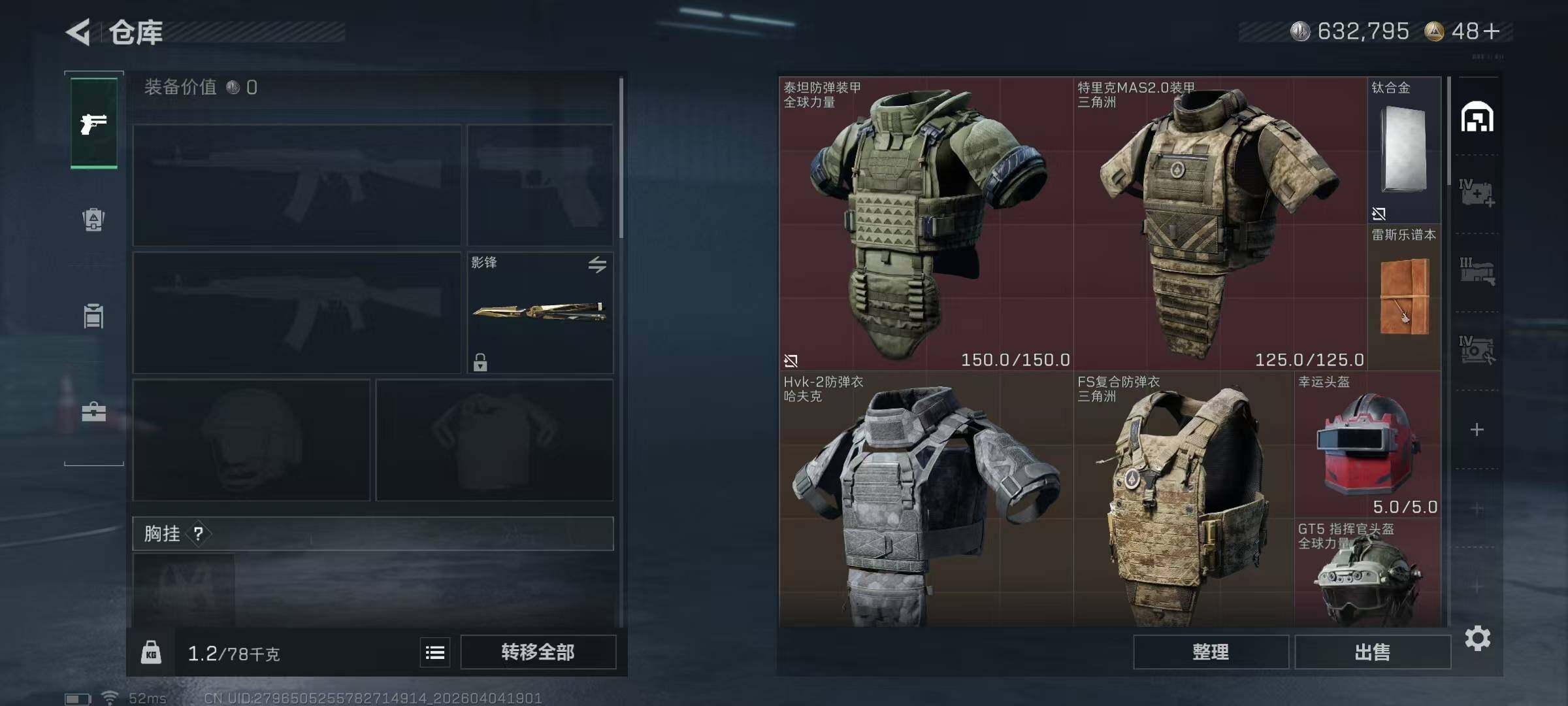 54m总资产-632k哈夫币-60烽火等级-钻石-28战场等级-列兵【干员外