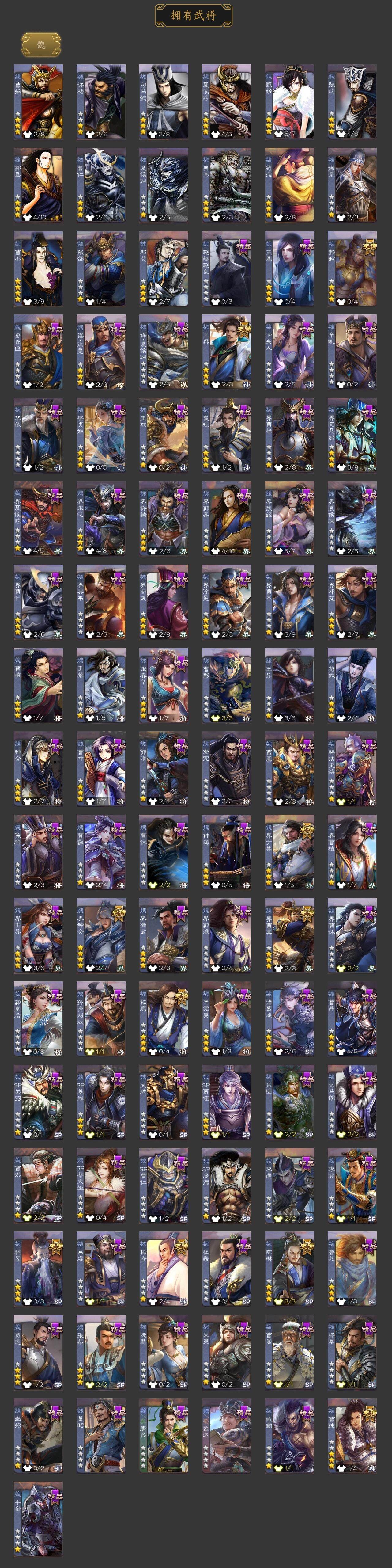 神吕布,神张辽,神诸葛亮,王粲,杨修,界钟会,界于禁,界曹真,嵇康,郝昭,陈琳,曹纯,程昱,关索,马云騄,谋赵云,谋马超,诸葛瞻,赵襄,张星彩,王平,沙摩柯,谯周,界黄忠,花鬘,董