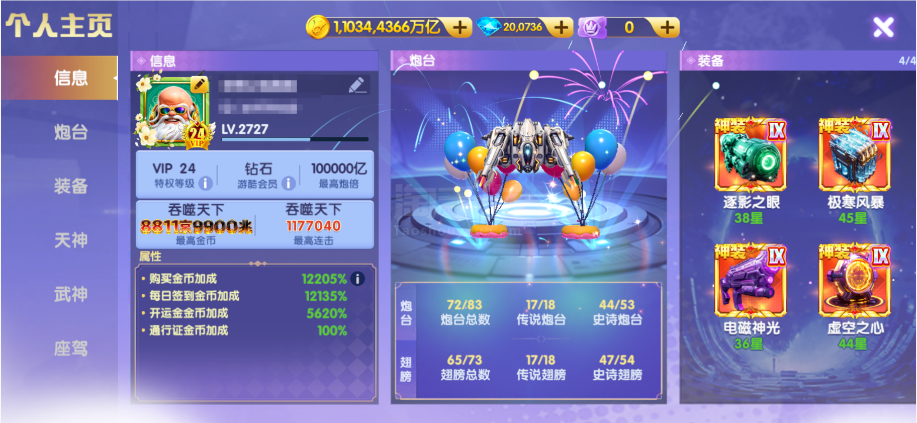 官服(手机登陆/可换绑)V24-12205加成-满觉醒天神/五福觉醒-武神基本全满-返点翅膀全有