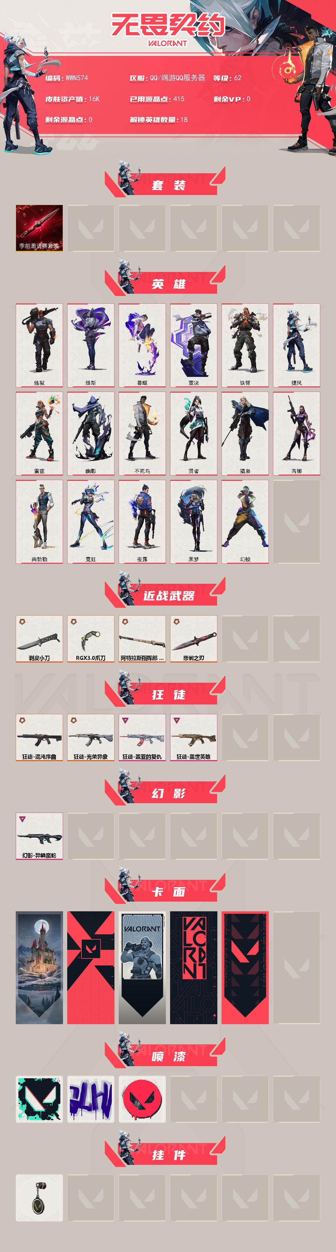 【卡面】:胡桃狂想 卡面,代号红色 卡面,新兵报到 卡面,V契约 卡面,无畏契约 卡面