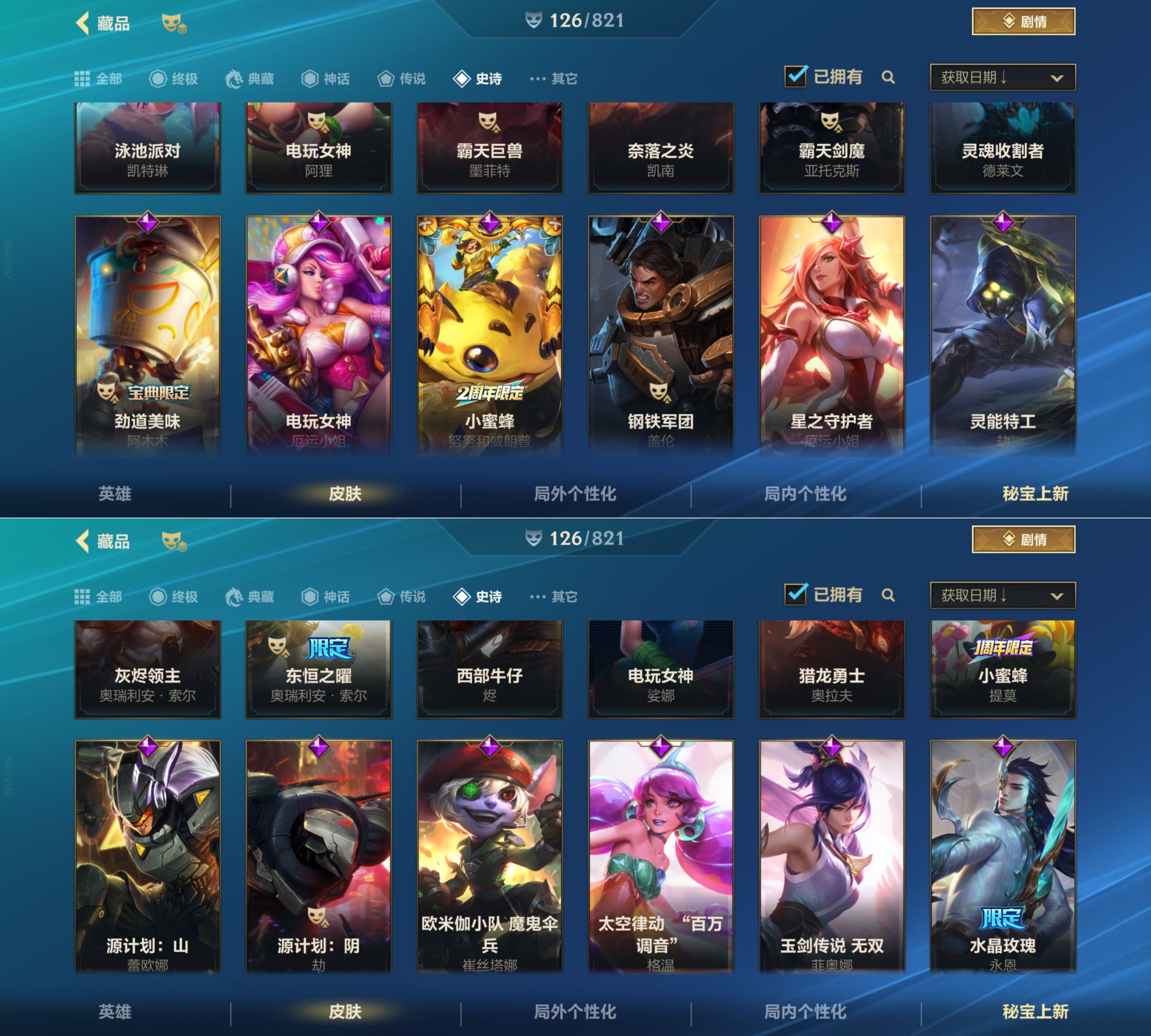 134英雄 126皮肤 1神话 22传说 国服永恩