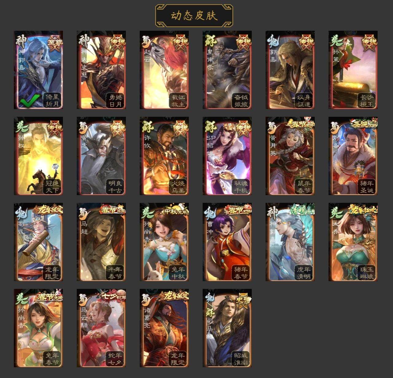 神张辽,神郭嘉,神诸葛亮,嵇康,曹纯,程昱,谋黄忠,谋夏侯氏,界黄忠,花鬘,董允,界朱然,贺齐,左慈,审配,沮授,界左慈,许攸,兀突骨,神吕蒙,神周瑜,SP关羽,SP曹仁,SP蔡文姬,乐进