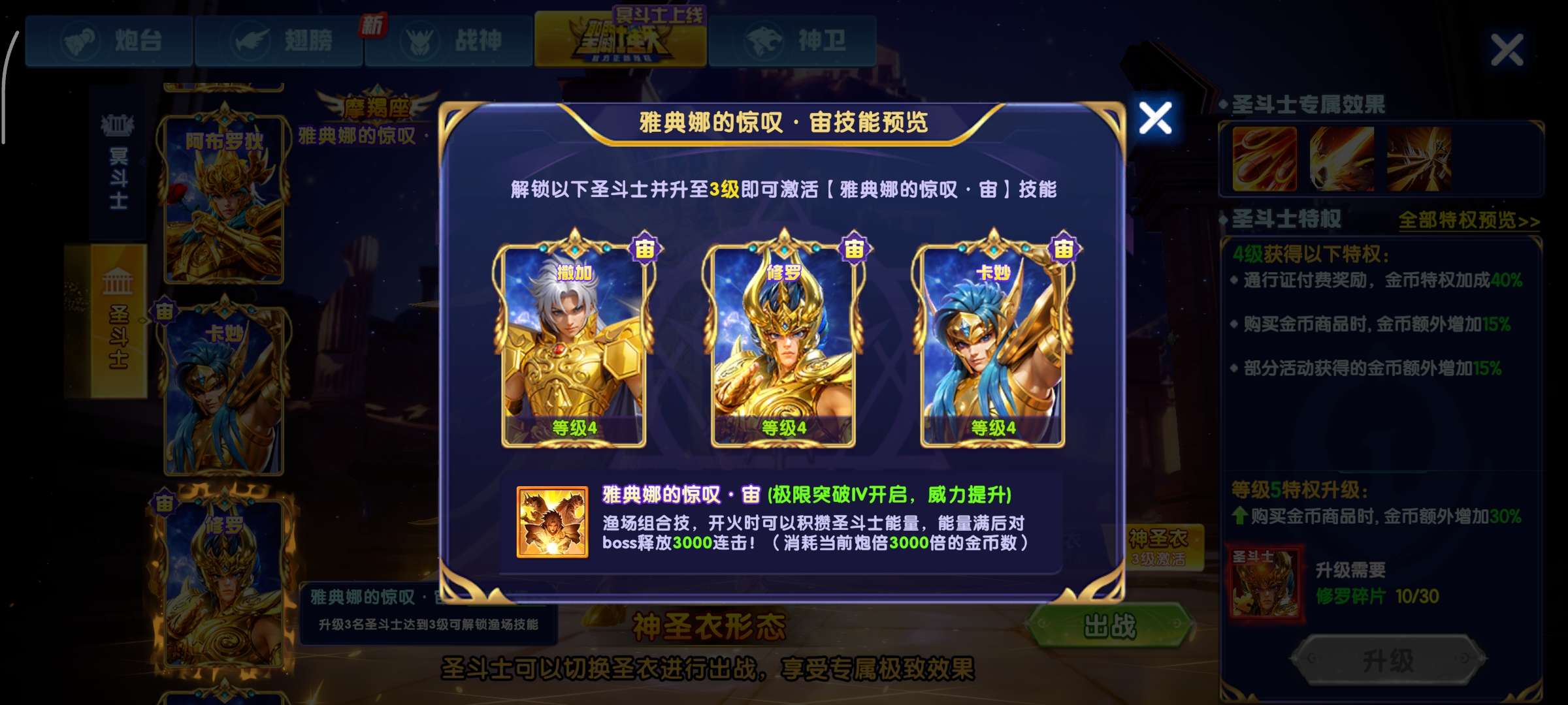巅峰40级,救济差不多1兆,圣斗士神卫机甲山海经角色全都有战神西游天使圣斗士必杀都有,技能全开