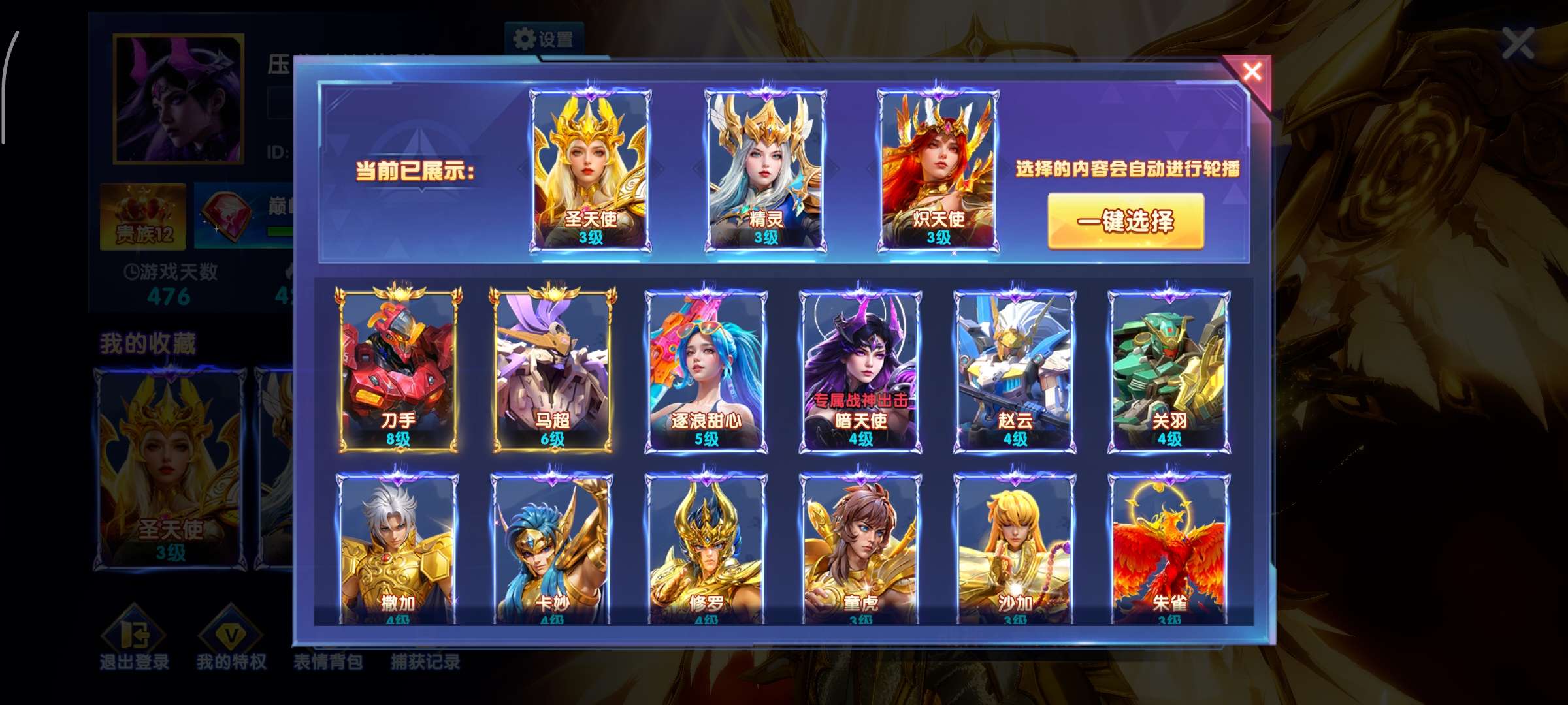 巅峰满级,救济金差不多一兆,翻倍10%,宙技天使必杀技都有,安卓OPPO支持换绑