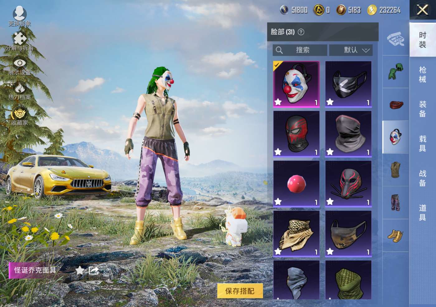 轿车3个币的金马和1币粉玛莎 ,和一个马皮 ,载具够用 ,粉熊包 ,金马有面