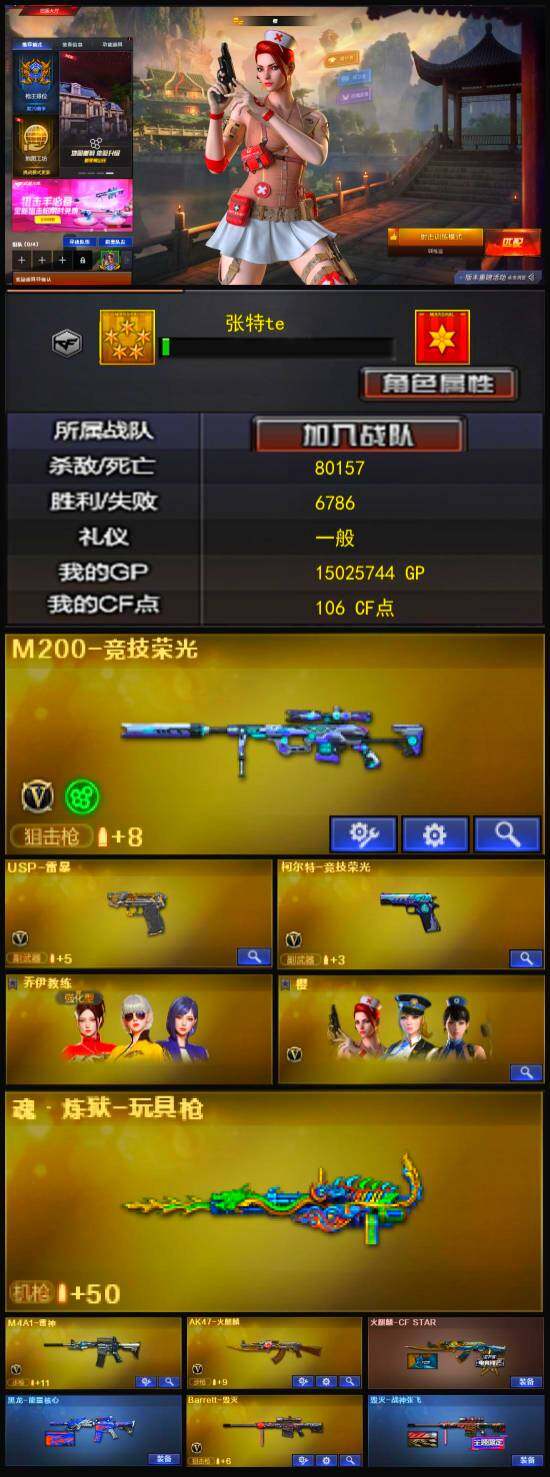 【英雄级武器】:M200-竞技荣光,柯尔特-竞技荣光,擎天-竞技荣光,高爆手雷-竞技荣光*3,烟雾弹-竞技荣光*2,闪光弹-竞技荣光*2,USP-雷暴,无影-神兵利器,M4A1-雷神,M4A1-玫瑰精灵,M4