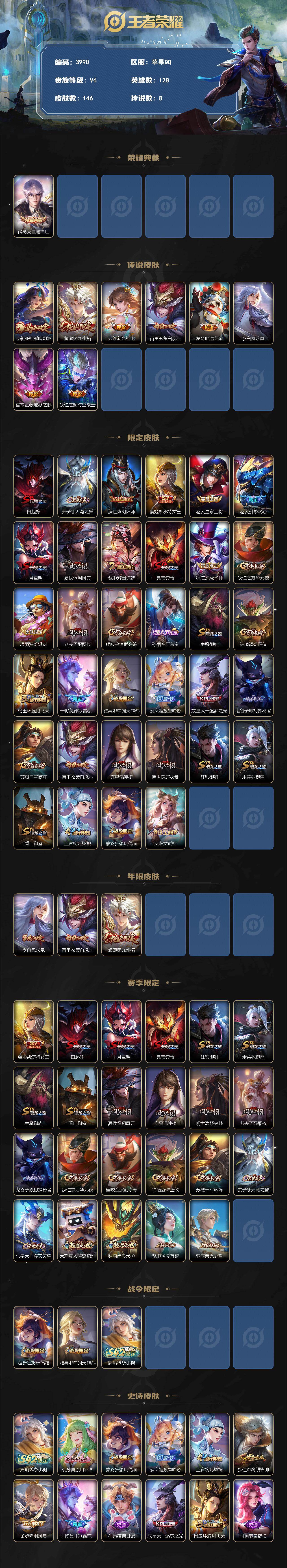 V7自玩小号·诸葛亮星域神启·8传说·146皮肤·低价出】苹果Q-V6-永恒钻石IV段位-128英雄-146皮肤-1典藏皮肤-8传说-34史诗