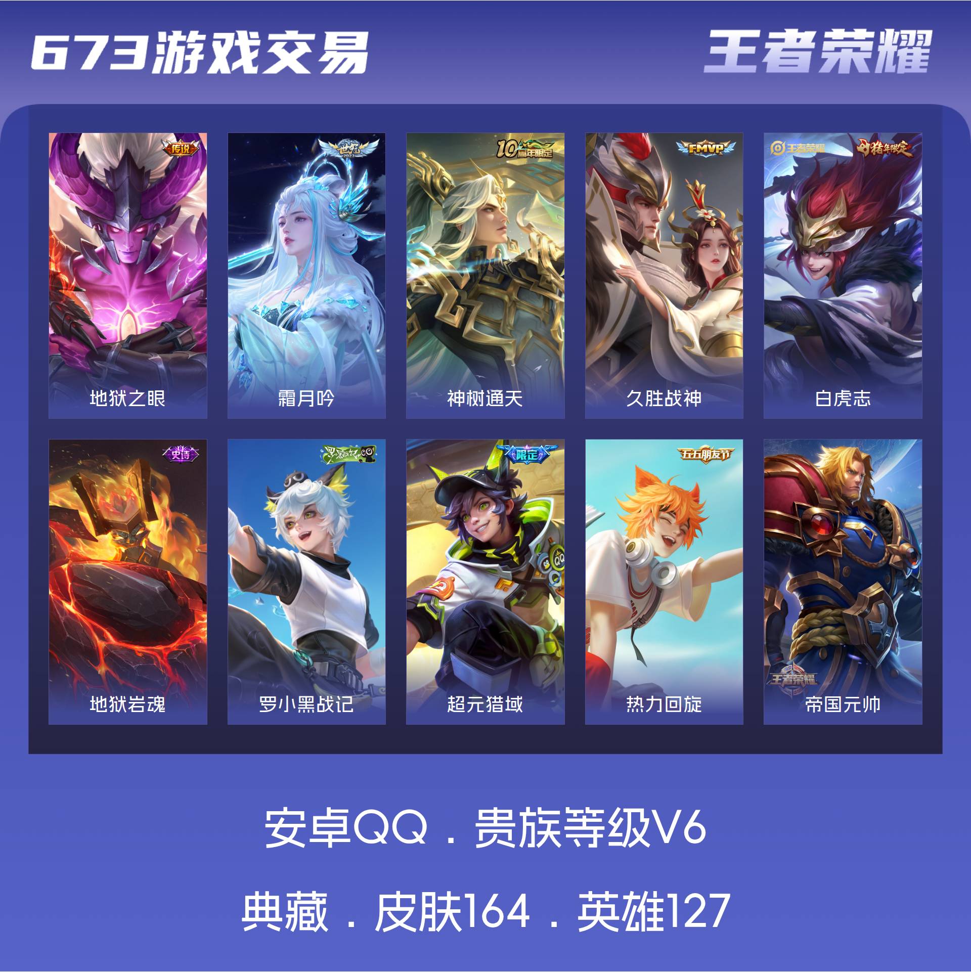 V6 皮肤164 英雄127 至尊星耀 星传说1 传说5
