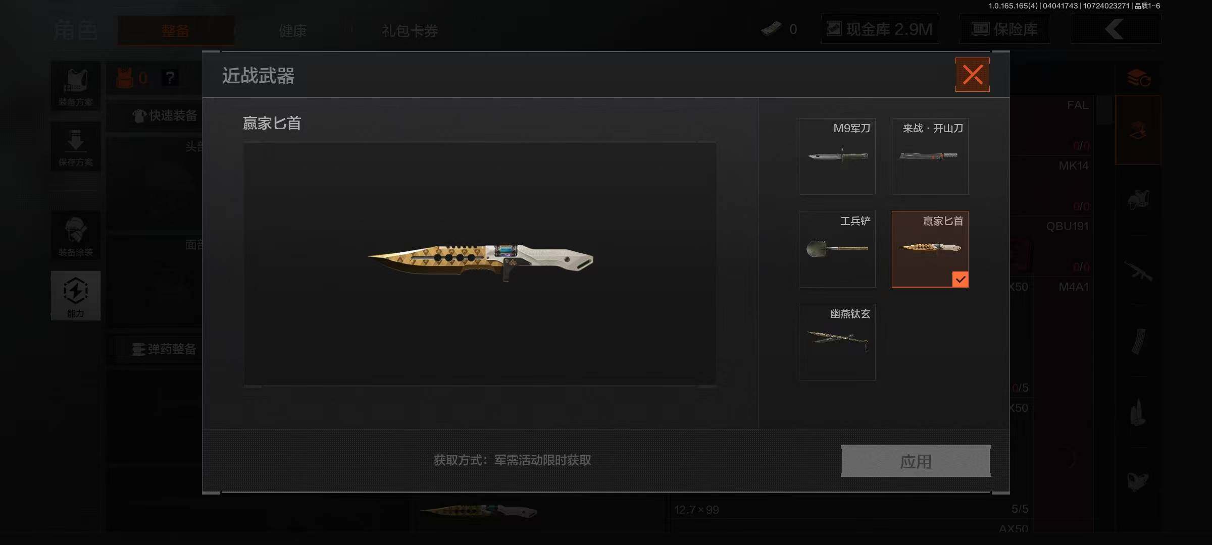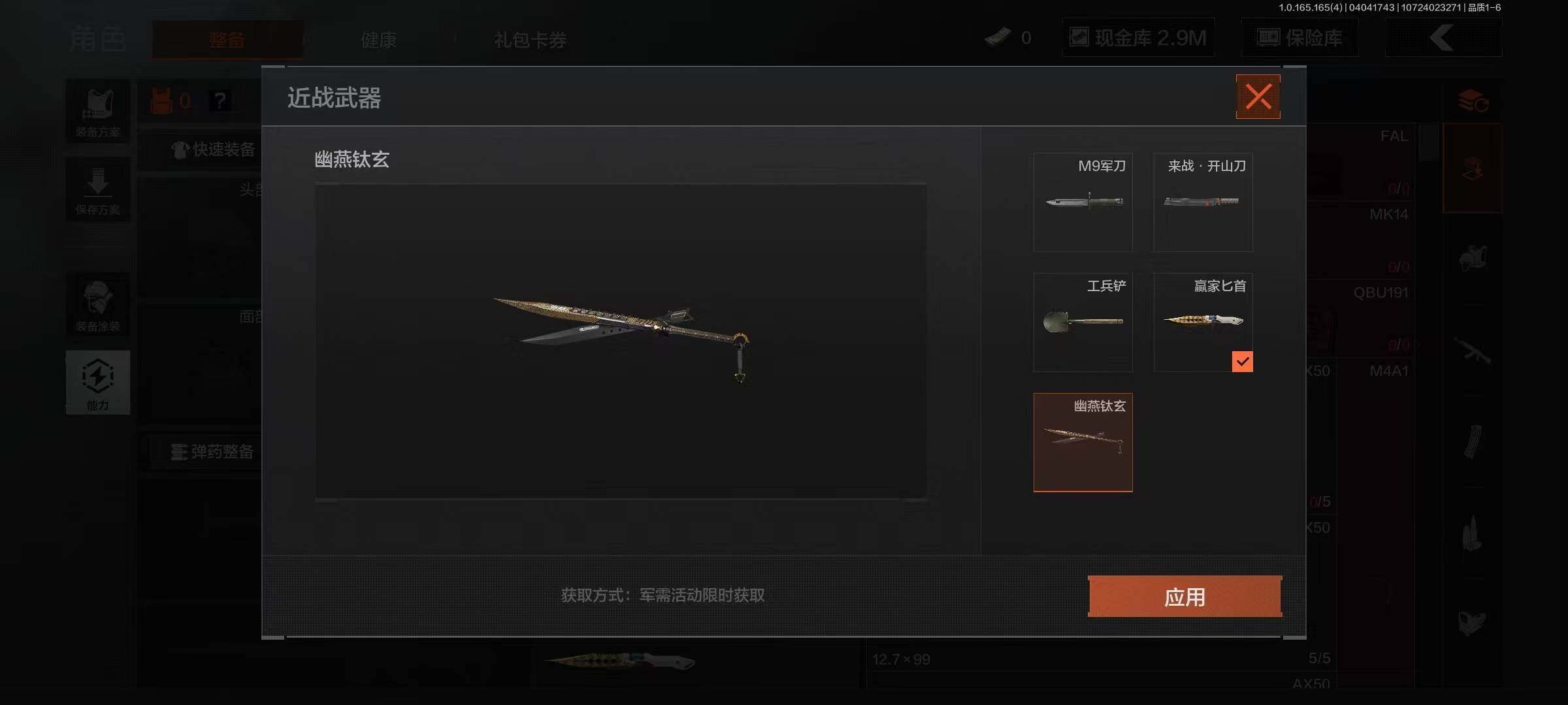 【AQZ383】等级:30/段位:专家/仓库价值(百万):42/柯恩币:2922/工兵铲/赢家匕首/幽燕钛玄/来战开山刀/苍白隐者伪装服/蝮蛇/林中人FAL/镀火熔金H416/告丧夜曲AUG/告丧夜曲AR57/财源八方来QBZ191/玉擎天工MP5/利齿风暴MPX/旧王圣谕VSS/棱光裂变QBU191
