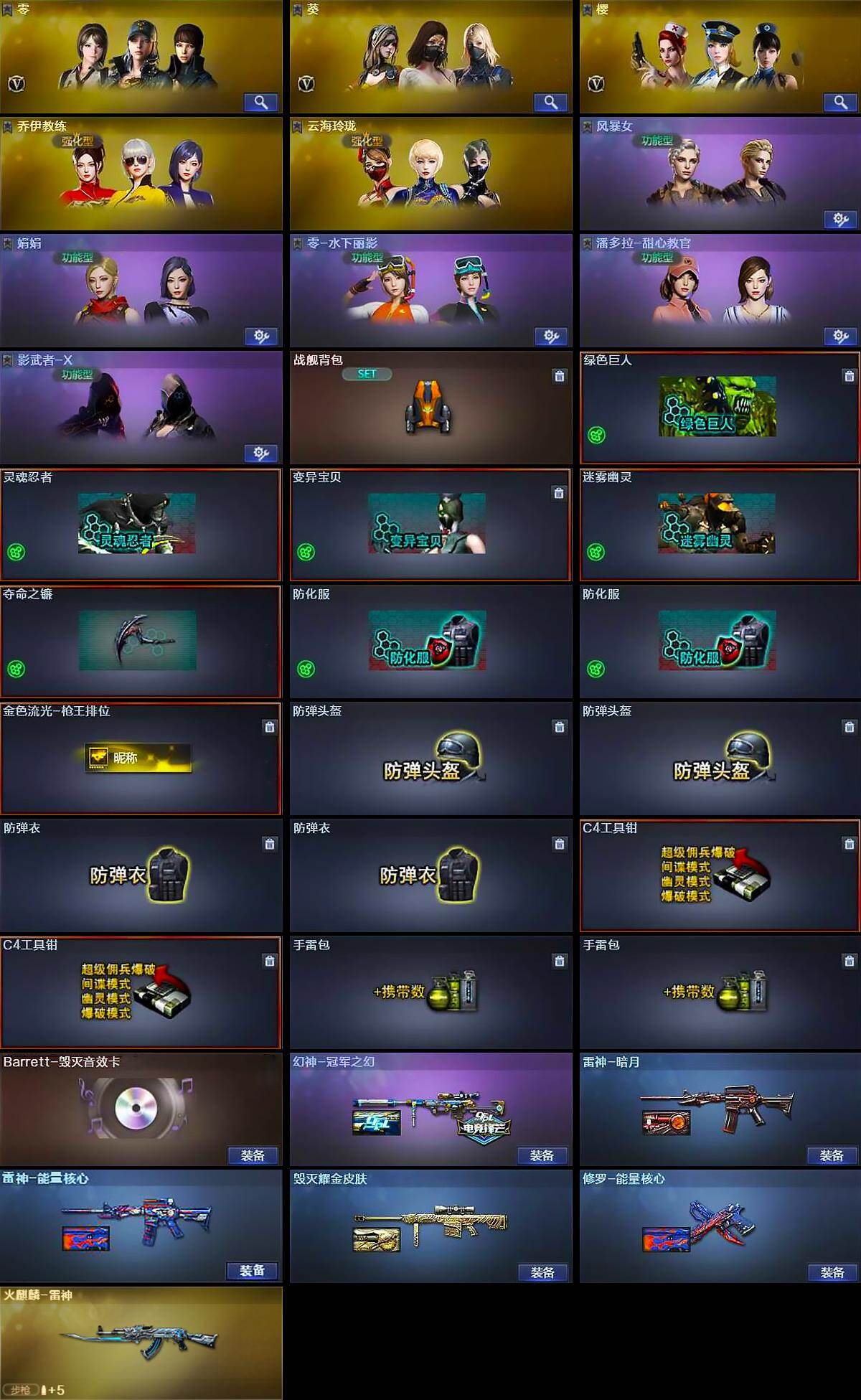 【角色】:零,葵,樱,狐影,乔伊教练,云海玲珑,风暴女,娟娟,零-水下丽影,潘多拉-甜心教官,影
