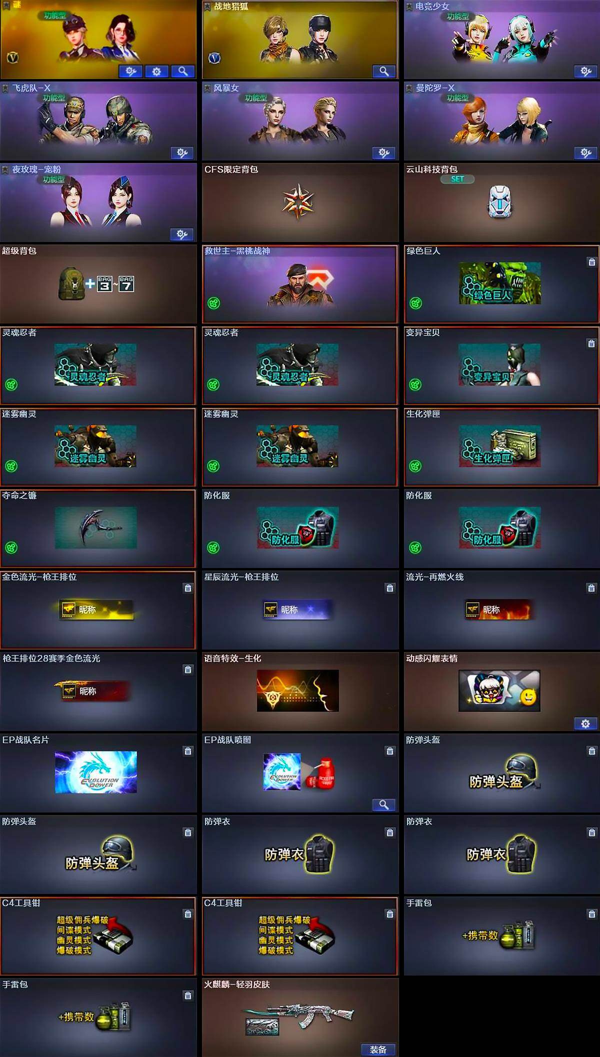 【角色】:谜,战地猎狐,电竞少女,飞虎队-X,风暴女,曼陀罗-X,夜玫瑰-宠粉